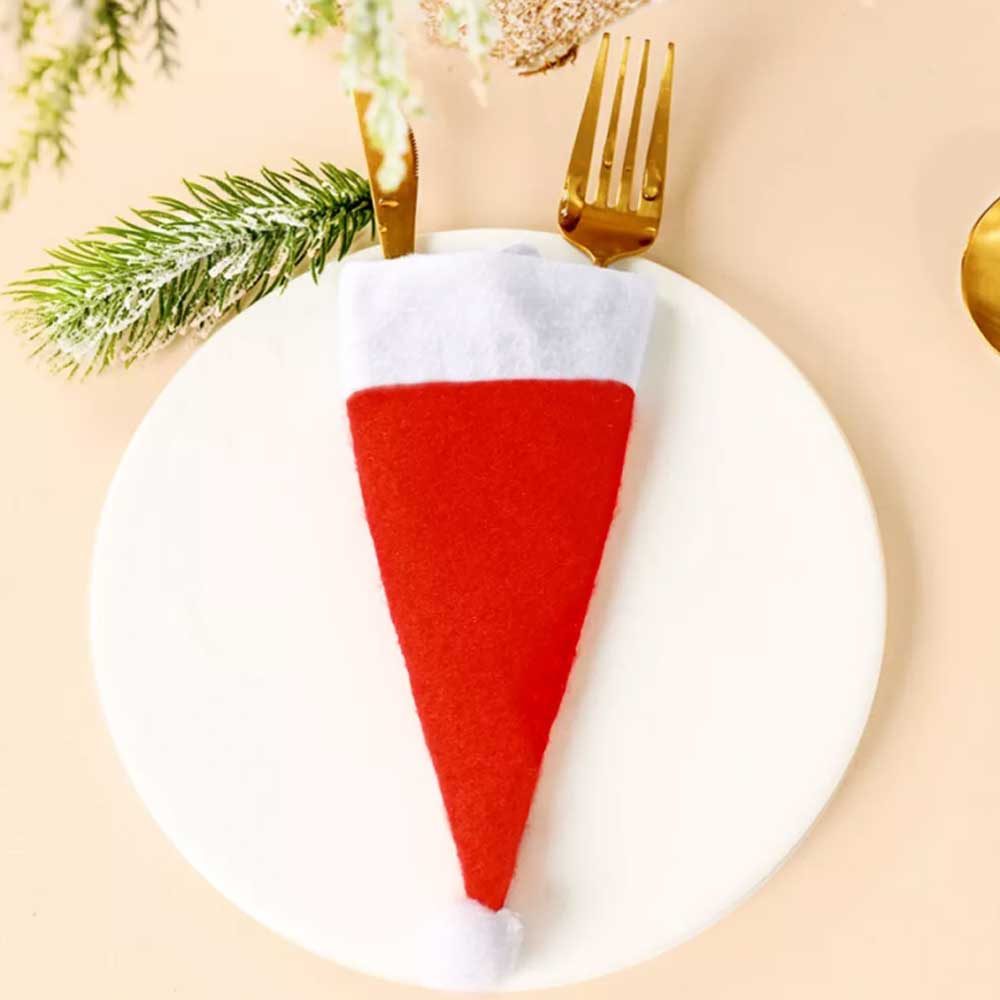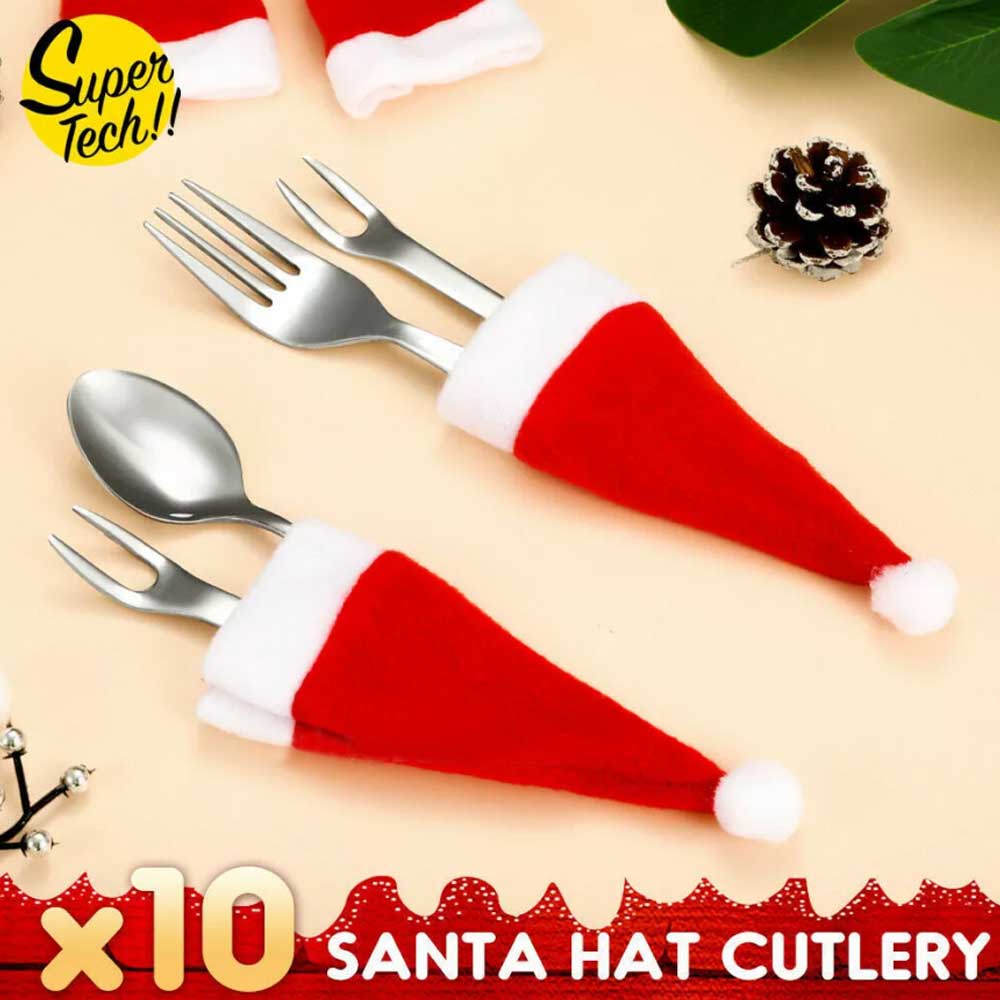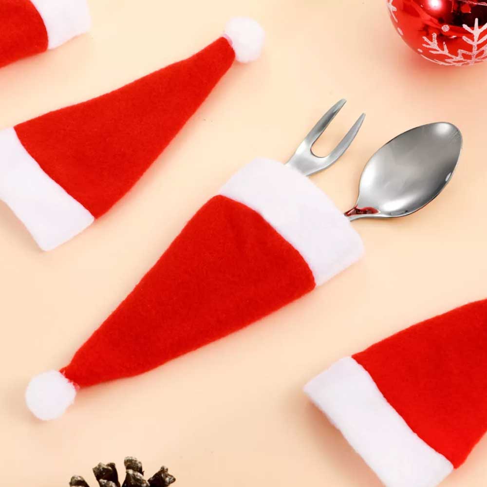 10PCS Red Hat Santa Cutlery Christmas Knife Bag Xmas Fork Holder Xmas Decoration