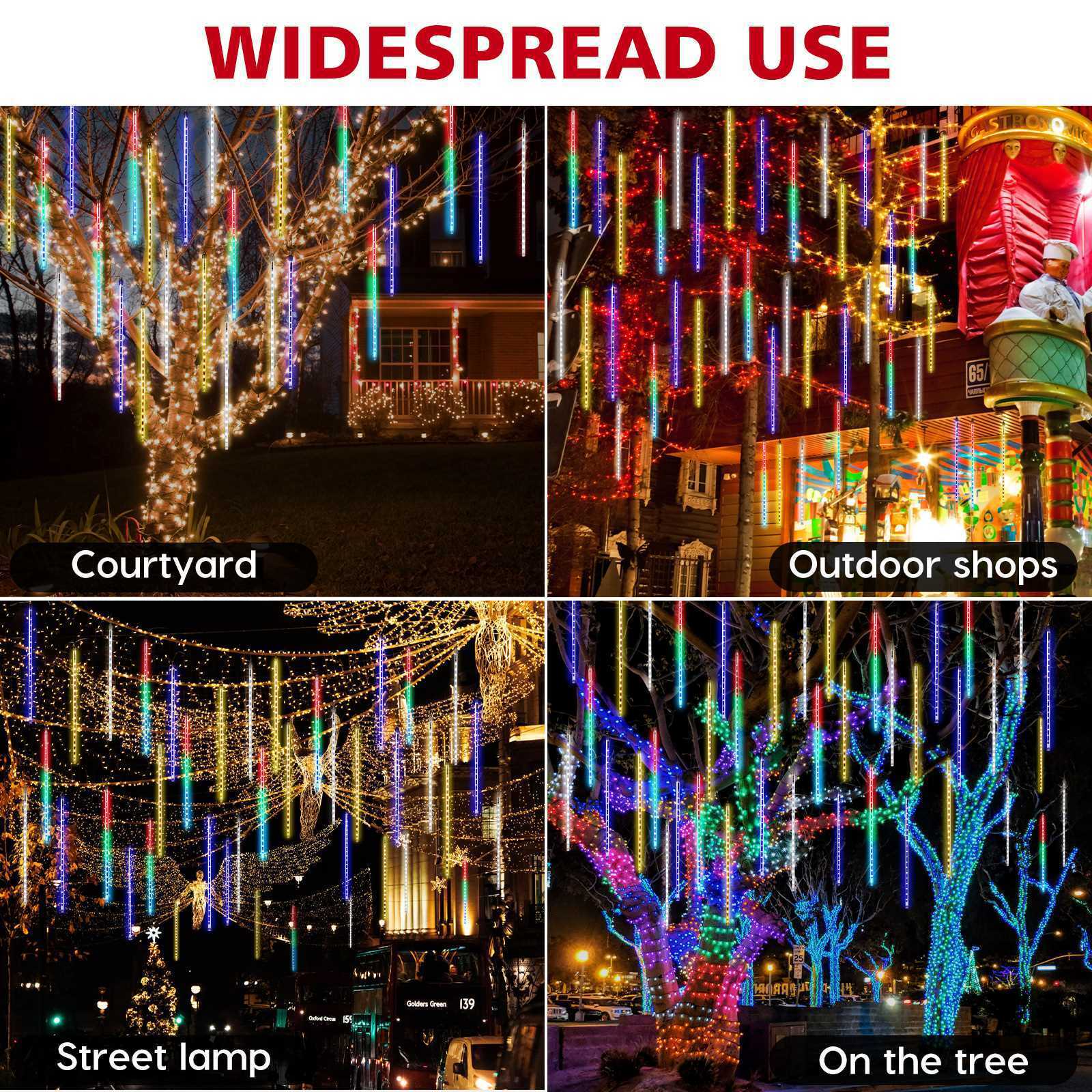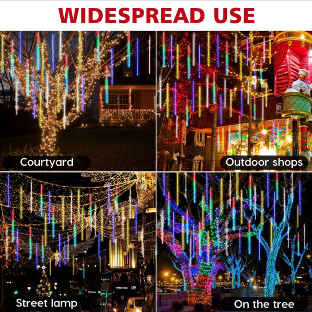 Meteor Shower Rain Lights are good use to decorate trees along streets, parks, rivers, it also suitable for home garden fence decorations, Christmas, New Year,wedding, party, shopping malls and hotels.