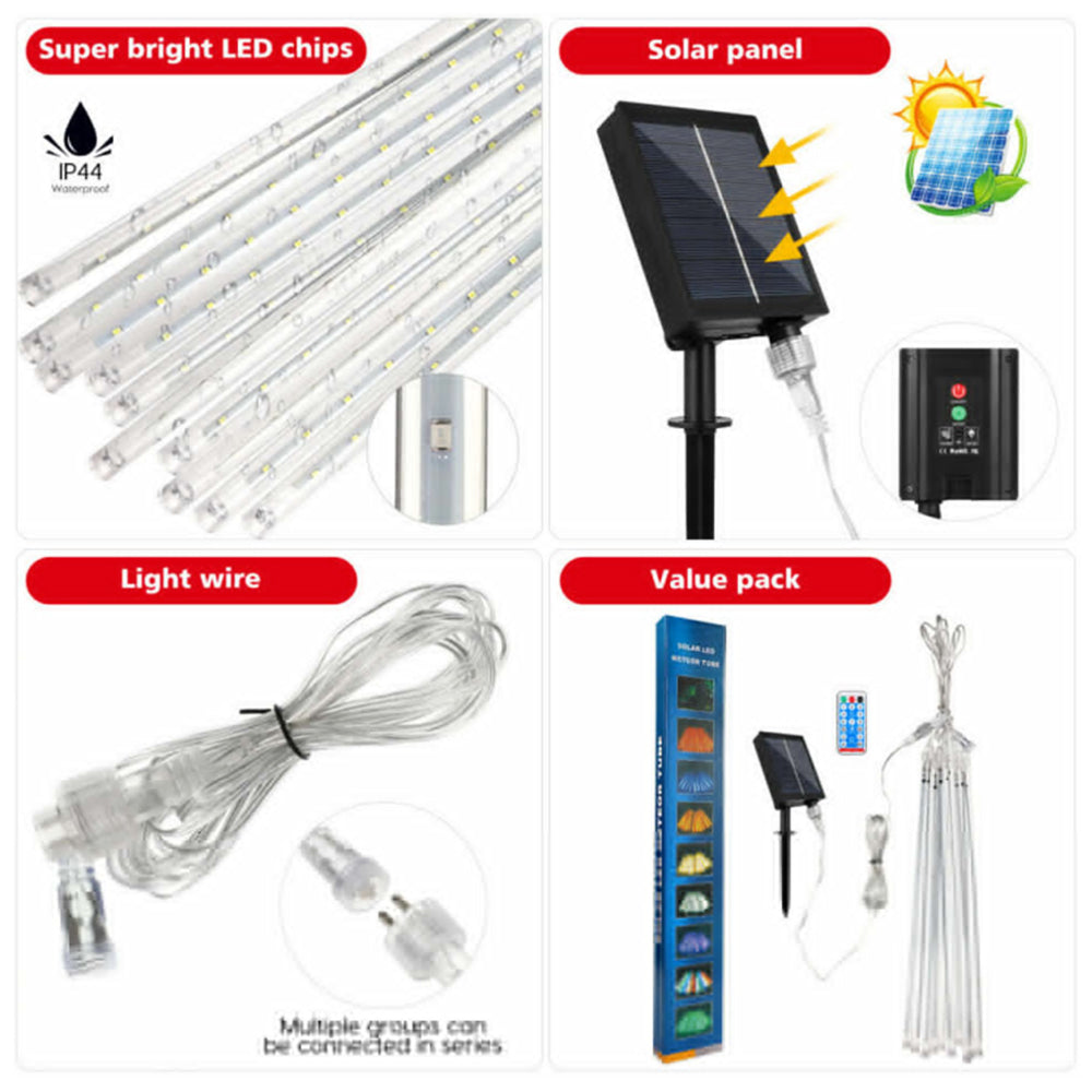 Colorful Meteor Lights have 10 tubes, and 50CM length for you 50CM length with 36pcs LED chips each tube.