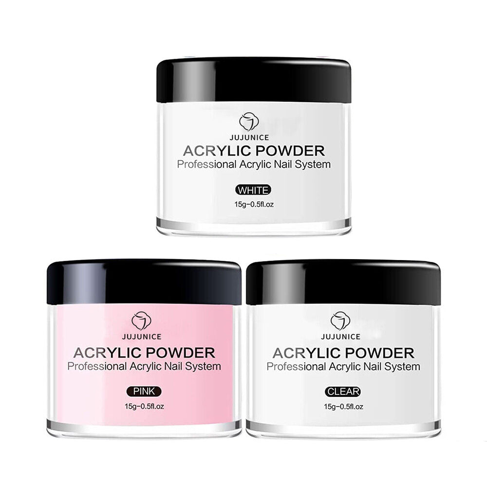 Acrylic Powders in 3 Colors (Clear, White and Pink), 15g