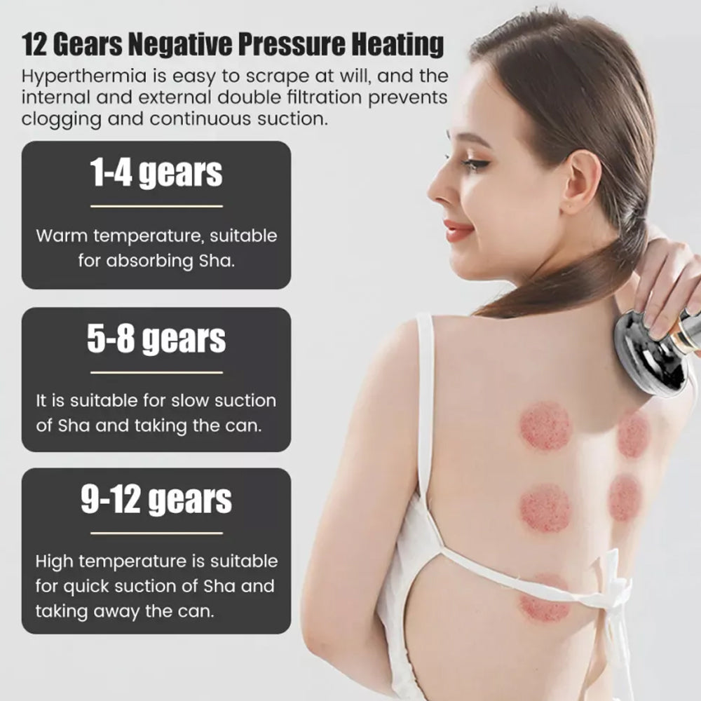 1.The intelligent electric Gu Sha instrument can be used for scraping, cupping and massage on different parts of the body, and it can gently care for different parts of the body.