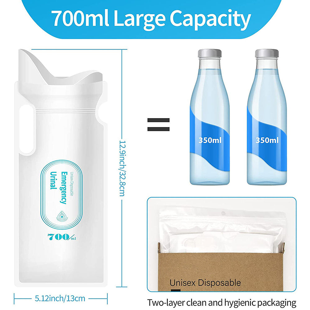 【Sealed and Waterproof】Urine bag 700ML large-capacity plus absorbent cotton design can instantly absorb urine, vomit, and other liquids. Emergency Pee Bag contains anti-spill gel, which can reduce the shaking of urine and other liquids, ensuring cleanliness and freshness during the journey.