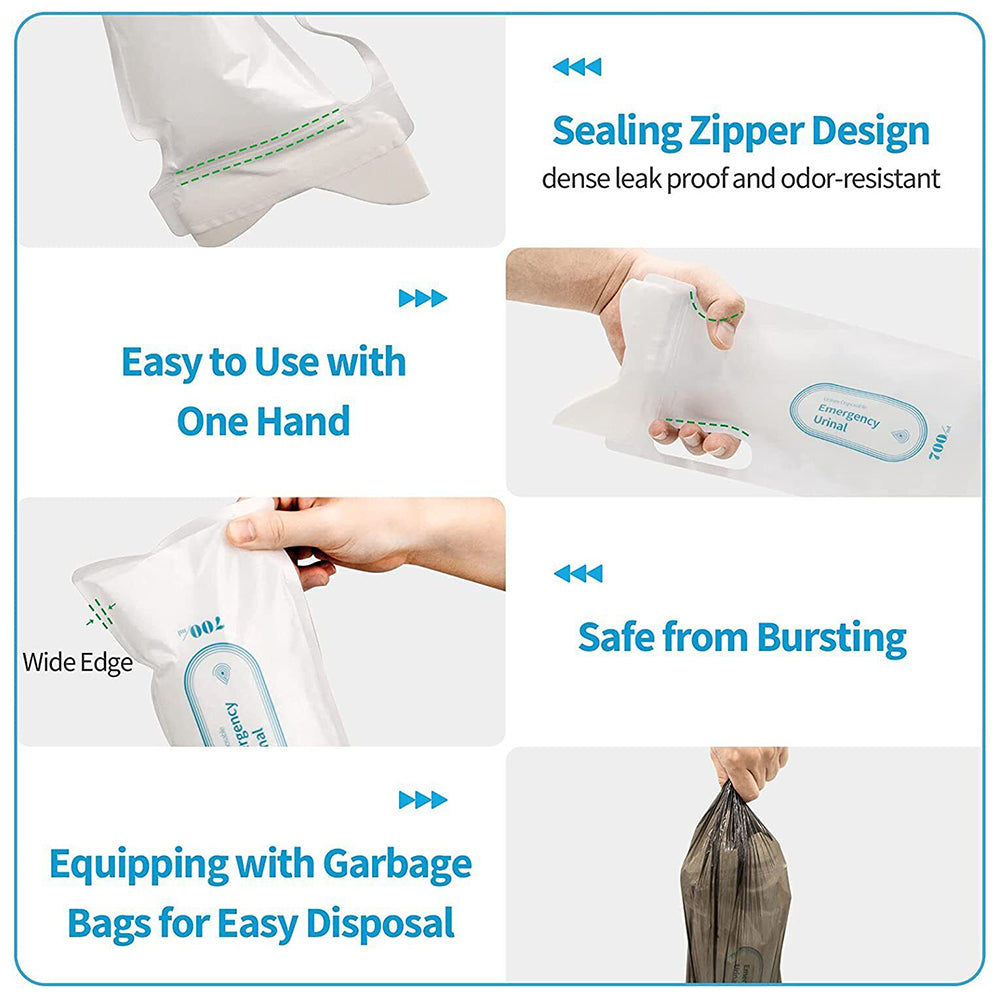 - Ideal for Special Populations: For the mother-to-be, this emergency urine bag can prevent cross-contamination from using public toilets when traveling. For people with limited mobility, the urine bag can help them to urinate on the spot. It is not recommended for people with inflexible hands and feet to use this urine bag.