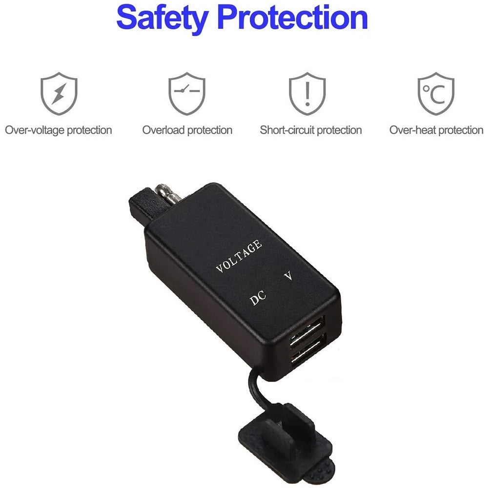 【Powerful Capacity】The SAE to USB adapter is designed for use on any 9-24 volt battery, and is used to charge any Phones, GPS, Camera, digital cameras, or any Smartphone or device that may be charged via USB.