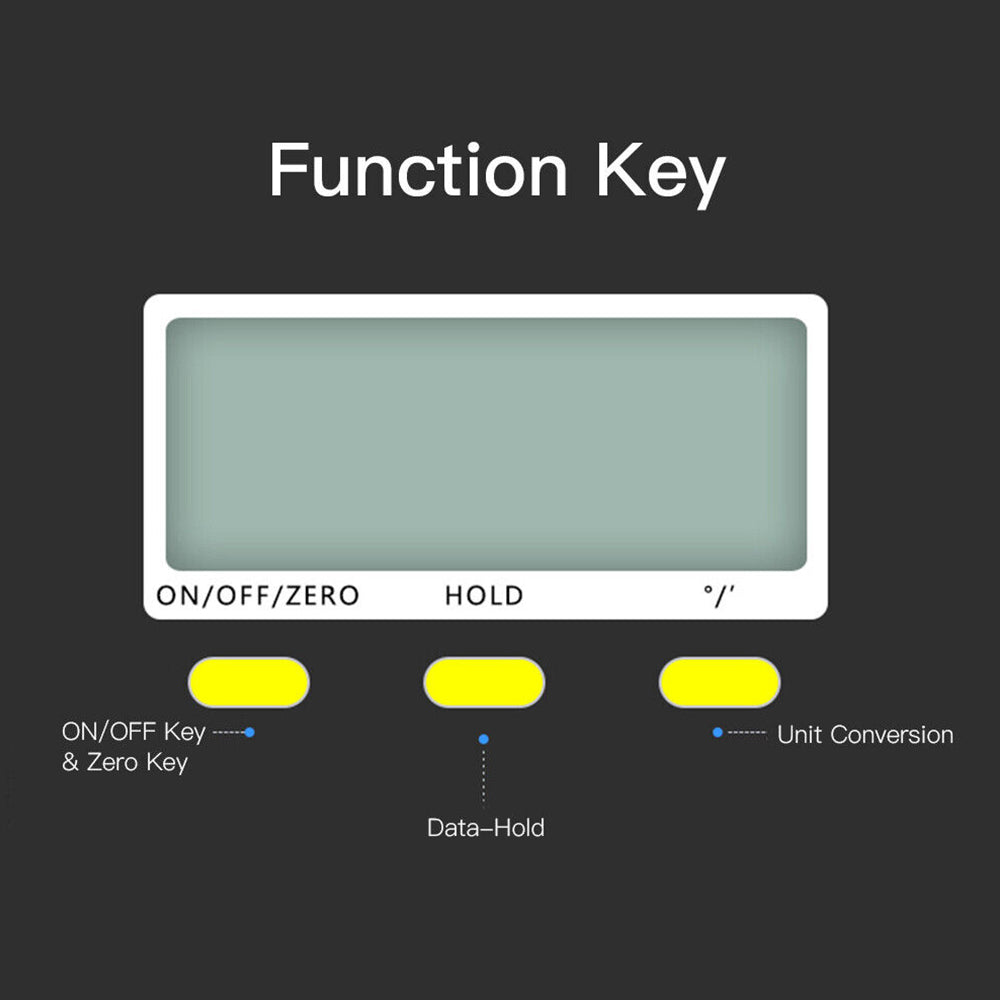 This is a practical 2 in 1 angle ruler. It can be used as rectilinear scale and goniometer. Made from 304 stainless steel, it has great durability and abrasive resistance. The large LCD display is very convenient for reading. If you are looing for a digital LCD Display angle ruler, it is your best choice.