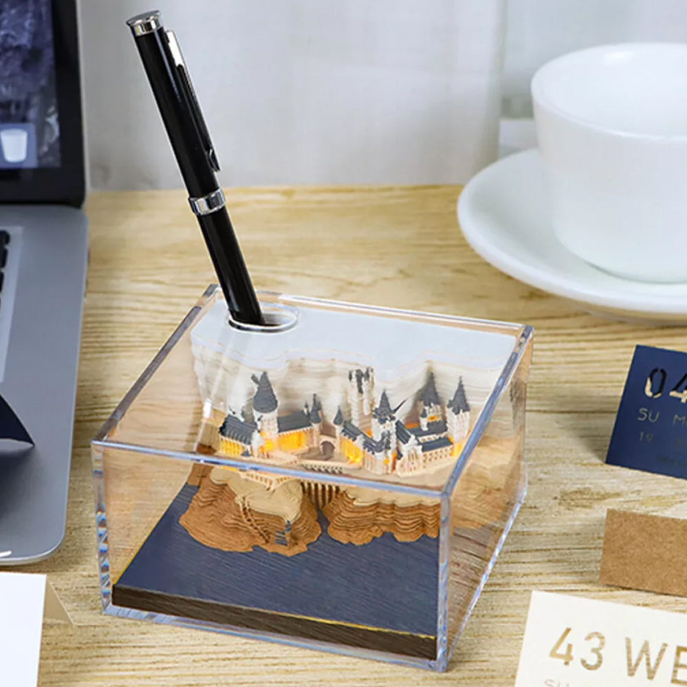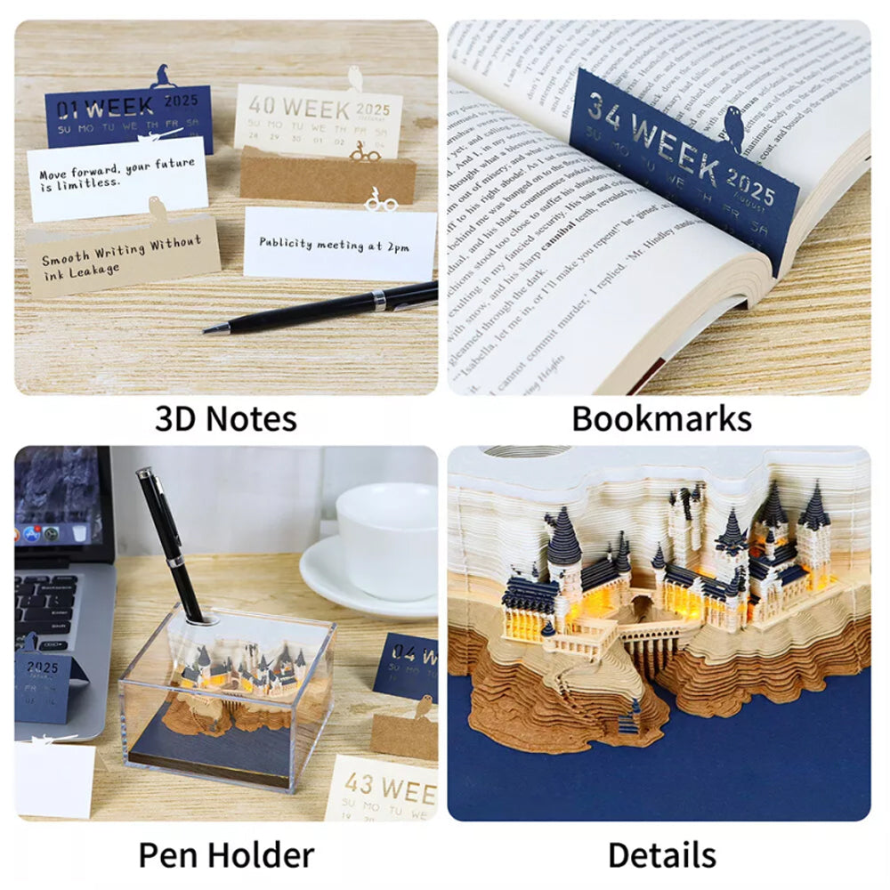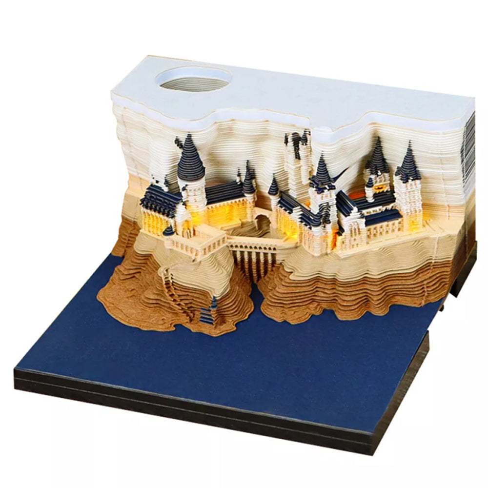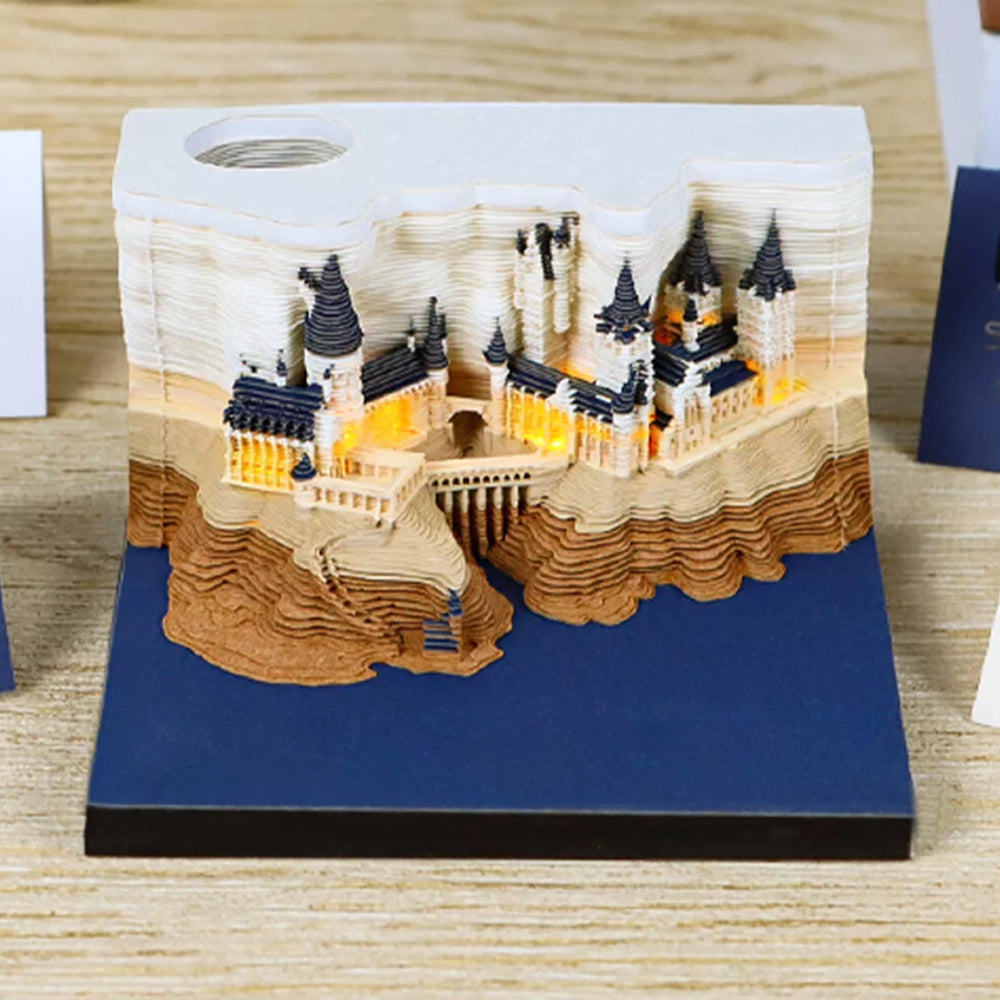 3.Illuminate Your Imagination: The bottom of this 3D memo pad calendar features a touch switch that activates a soft LED light, transporting you into a magical realm, inspiring creativity, and infusing your room with a captivating atmosphere. It requires 2 AAA batteries (not included).