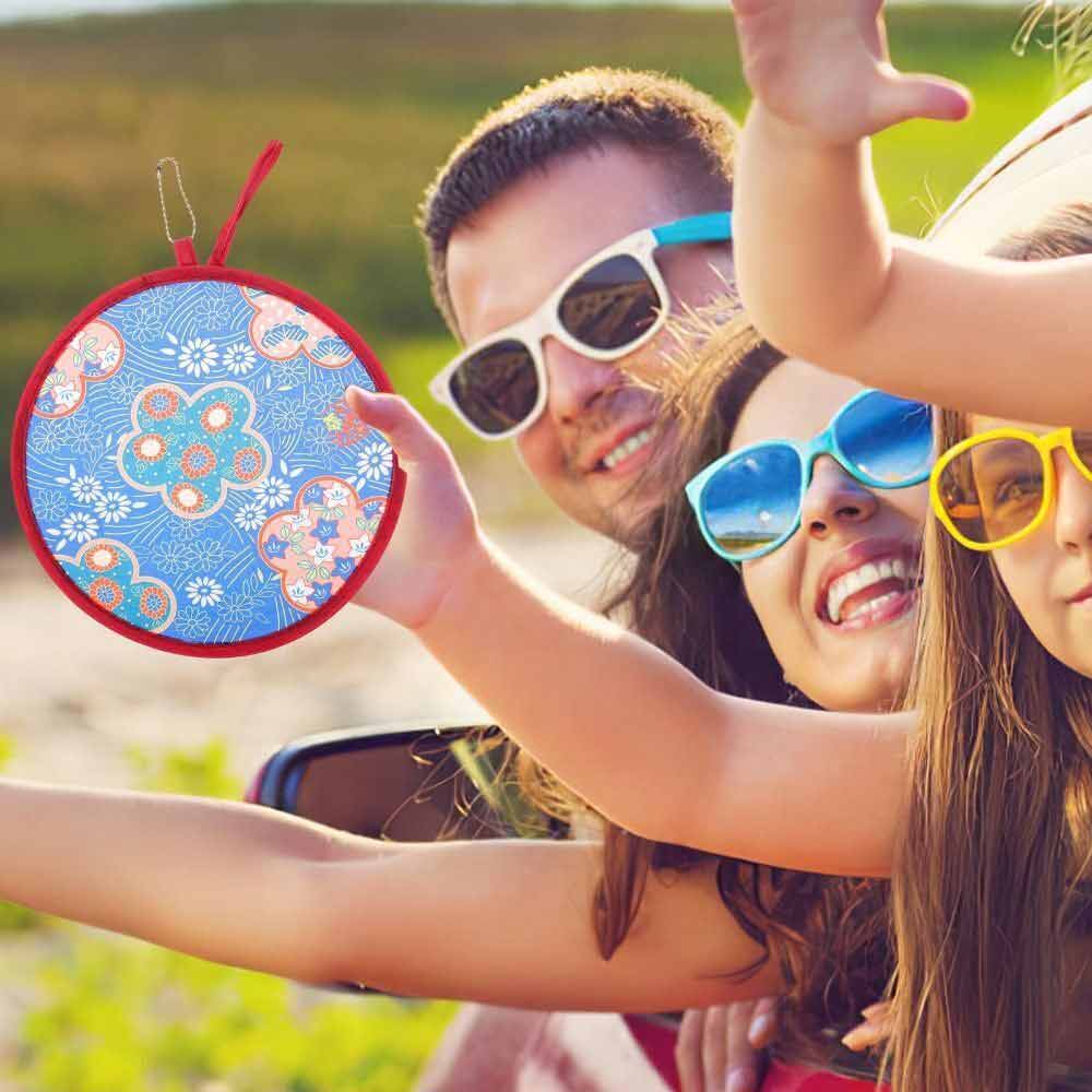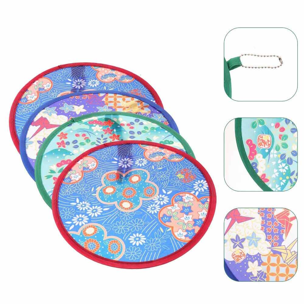 20pcs Art Handmade Round Nylon Hand Fan Flying Disk Folding Fans Kid Outdoor