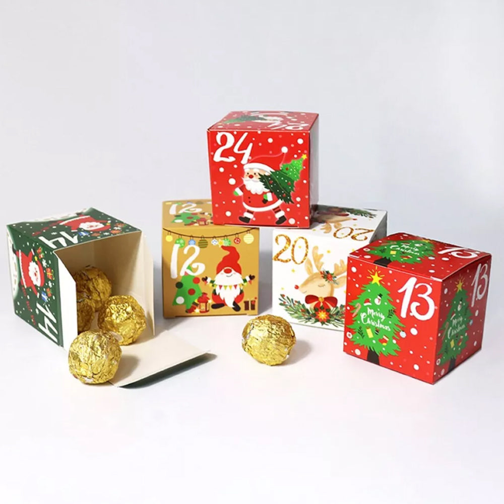 【Package include】You will get 24 pieces paper gift box with 24 count down numbers for each set; Each Christmas advent calendar box measures about 7*7*7cm/2.7*2.7*2.7inches, cute size for you to pack small count down gifts.