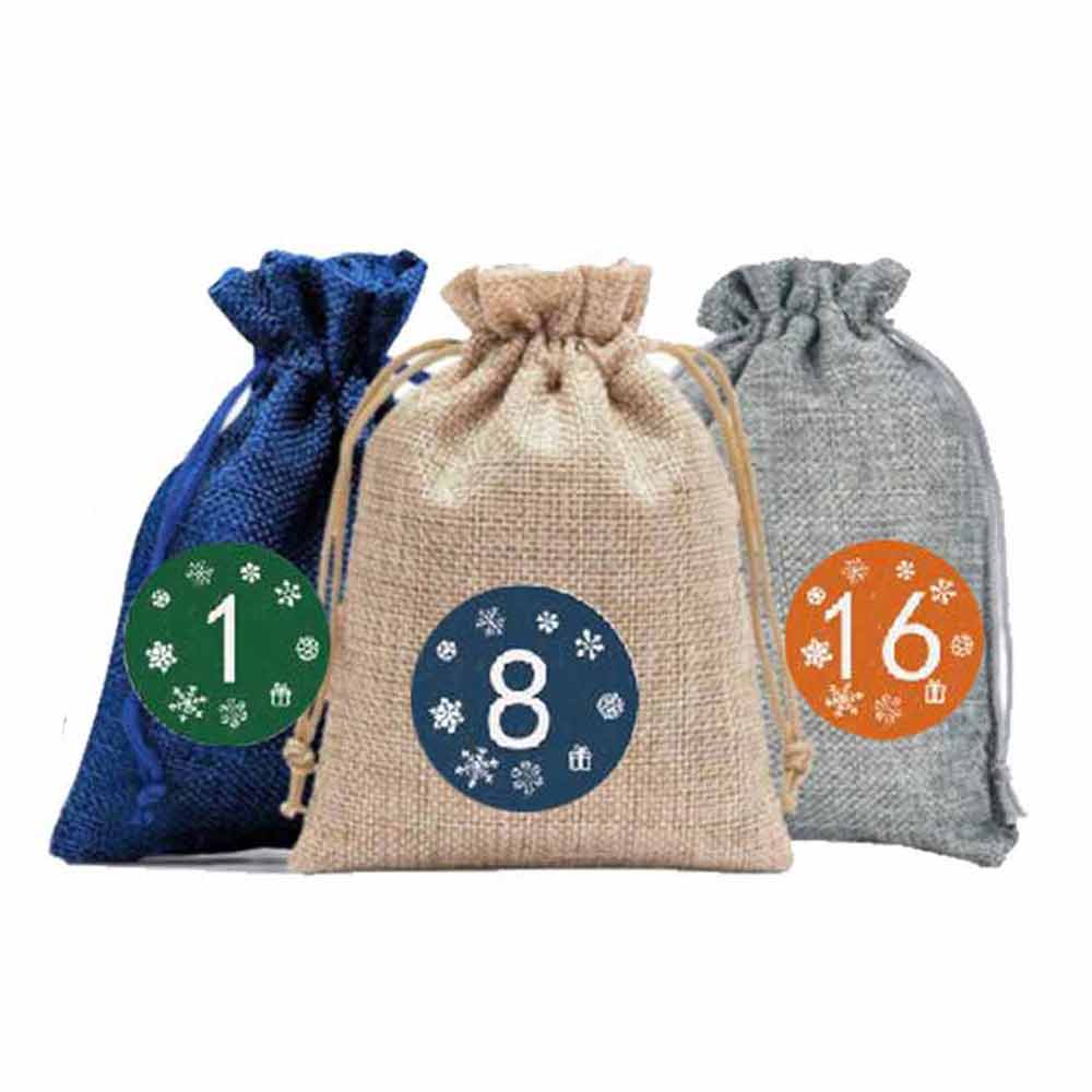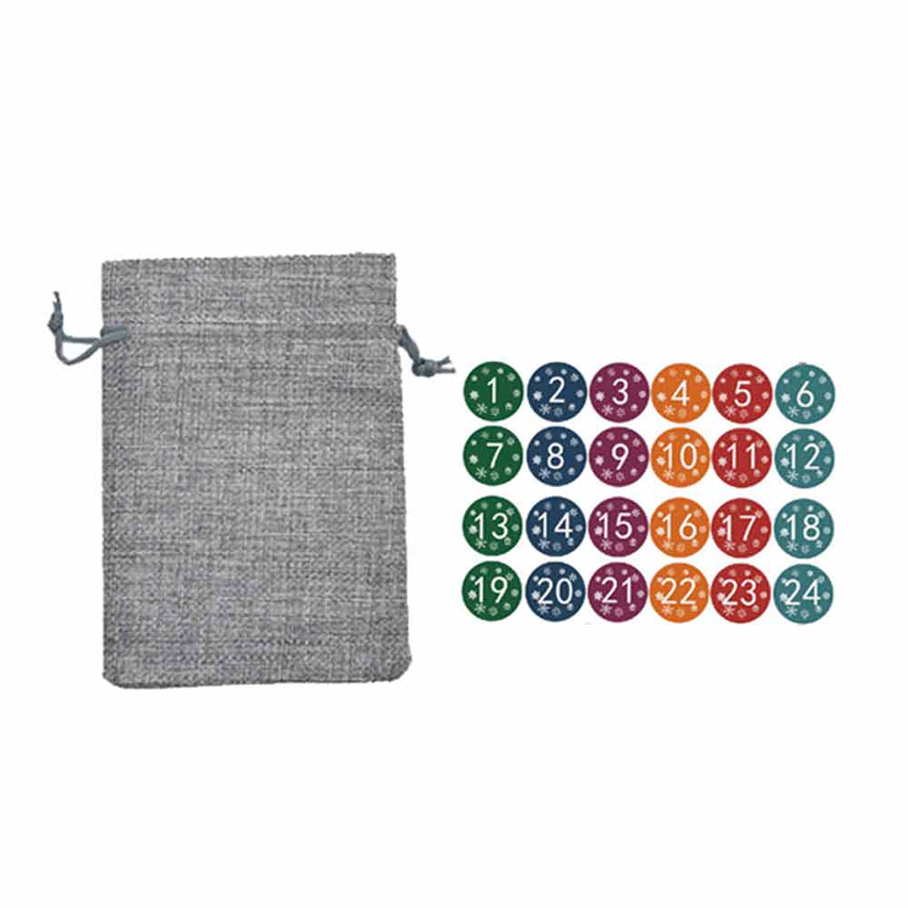 24X Christmas advent calendar bags 24 days fabric bags with drawstring Kit