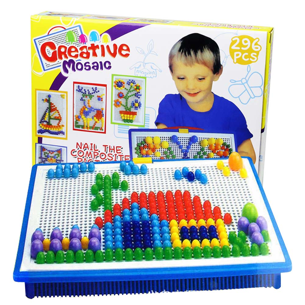 296pcs Kids Creative Children Puzzle Pegs Board Educational Learning Toys