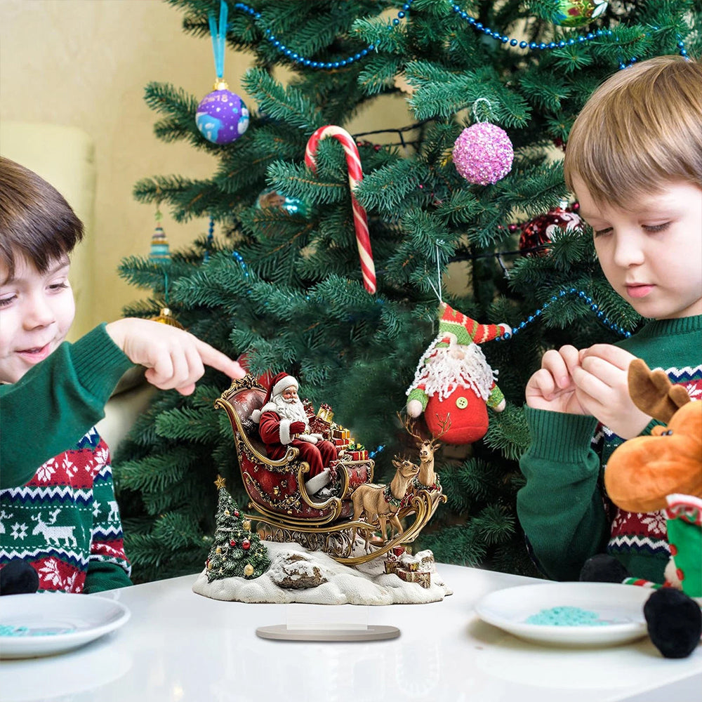2D Santa Claus & Reindeer Sleigh Acrylic Tabletop Decor - 25x25cm Festive Stand Ornament