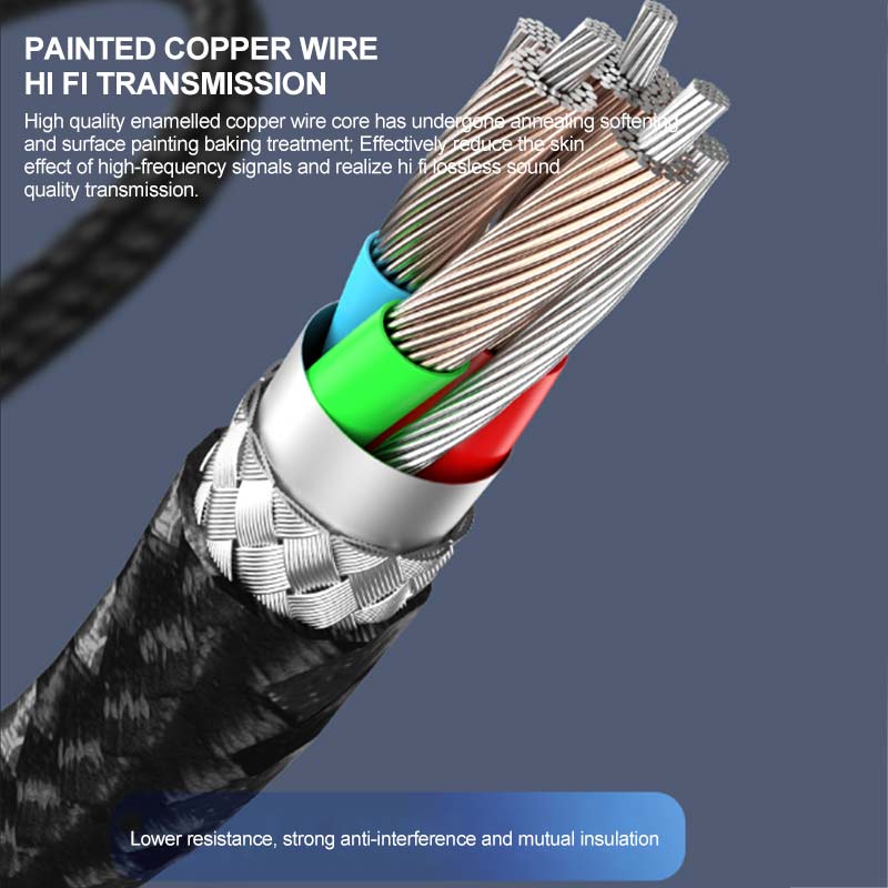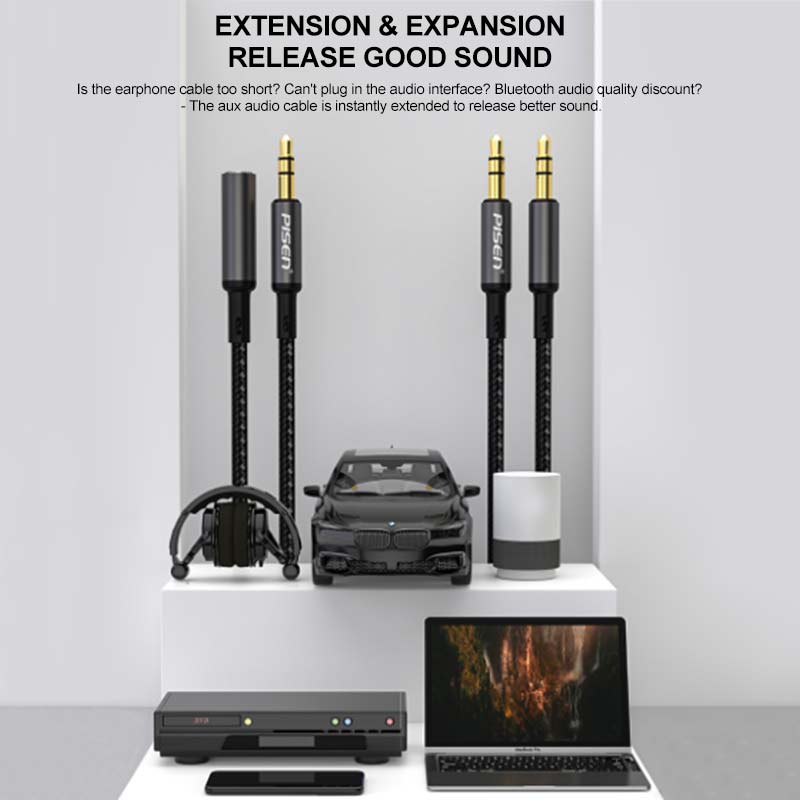 2m Aluminum Alloy Male to Male Braided Audio Cable 3.5mm PISEN LH-YP01-2000