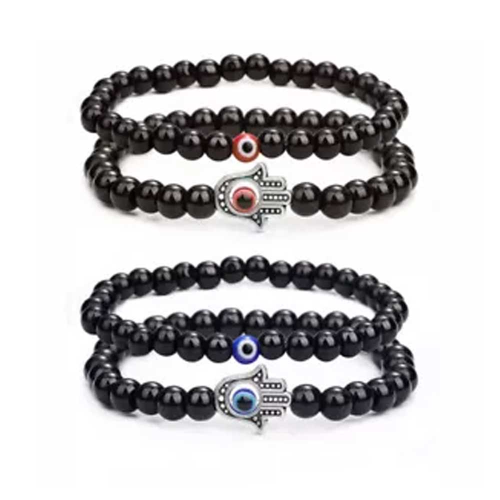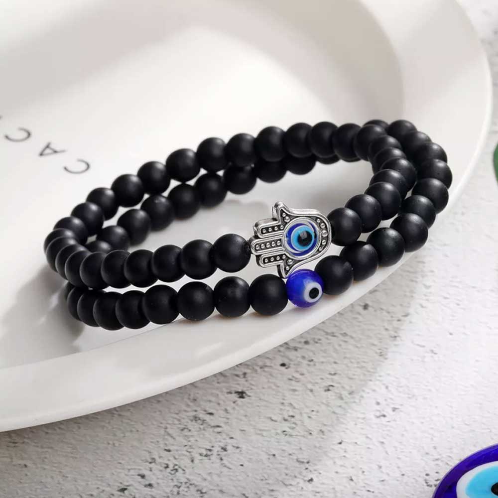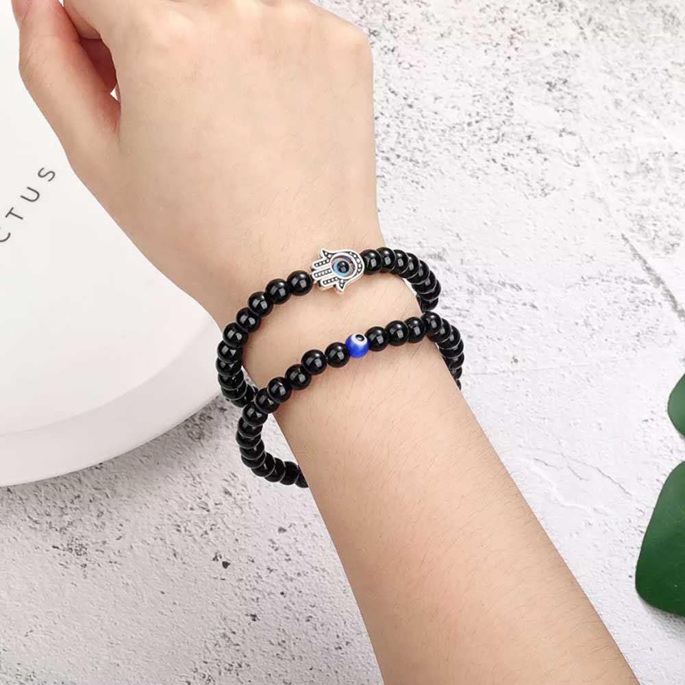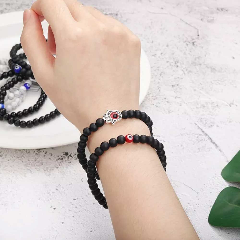 2Pcs Hamsa Evil Eye Bracelet Turquoise Beaded Sets Women Men Lucky Jewelry Gifts