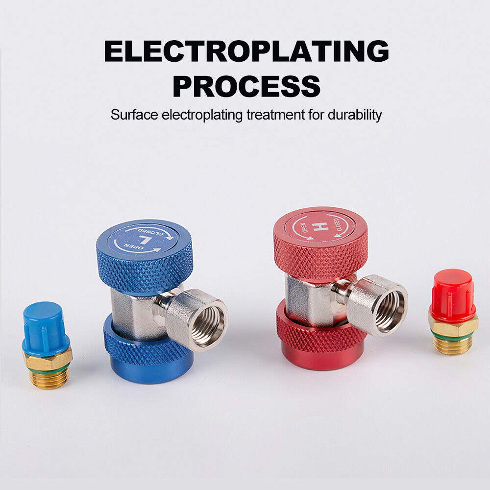 This quick couplers allow you to attach the manifold hoses onto the automotive/car air condition R134a system during the