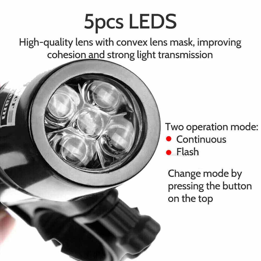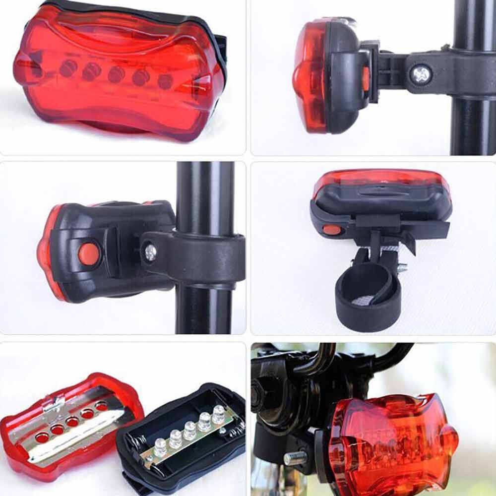 2X Front Rear Bike Light 5 LED Bicycle Tail Lights Waterproof Flashlight