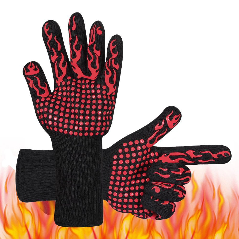 2x1472°F Heat Proof Resistant Oven BBQ Gloves 35cm Kitchen Cooking Silicone Mitt