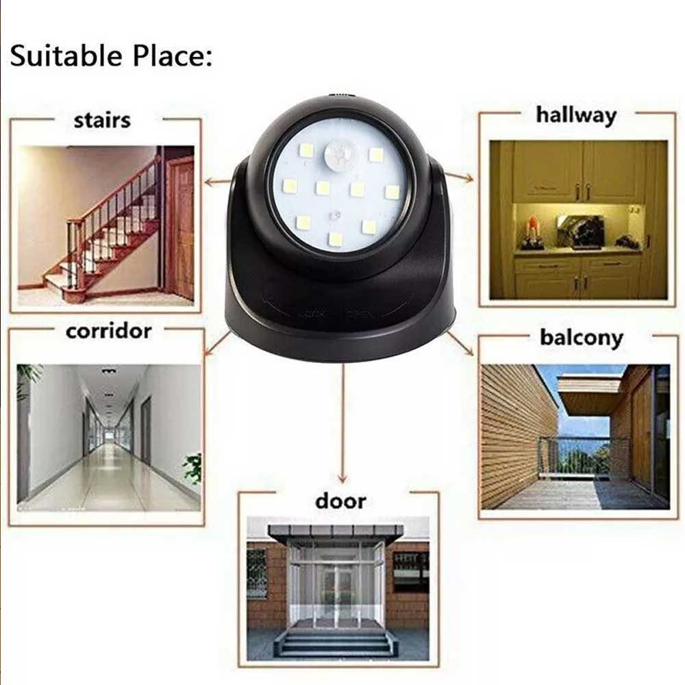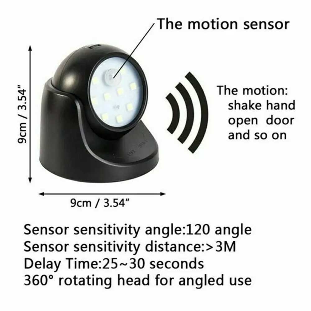 360° Battery Operated Indoor Outdoor Garden Motion Sensor Security LED Light New
