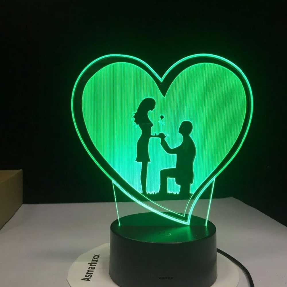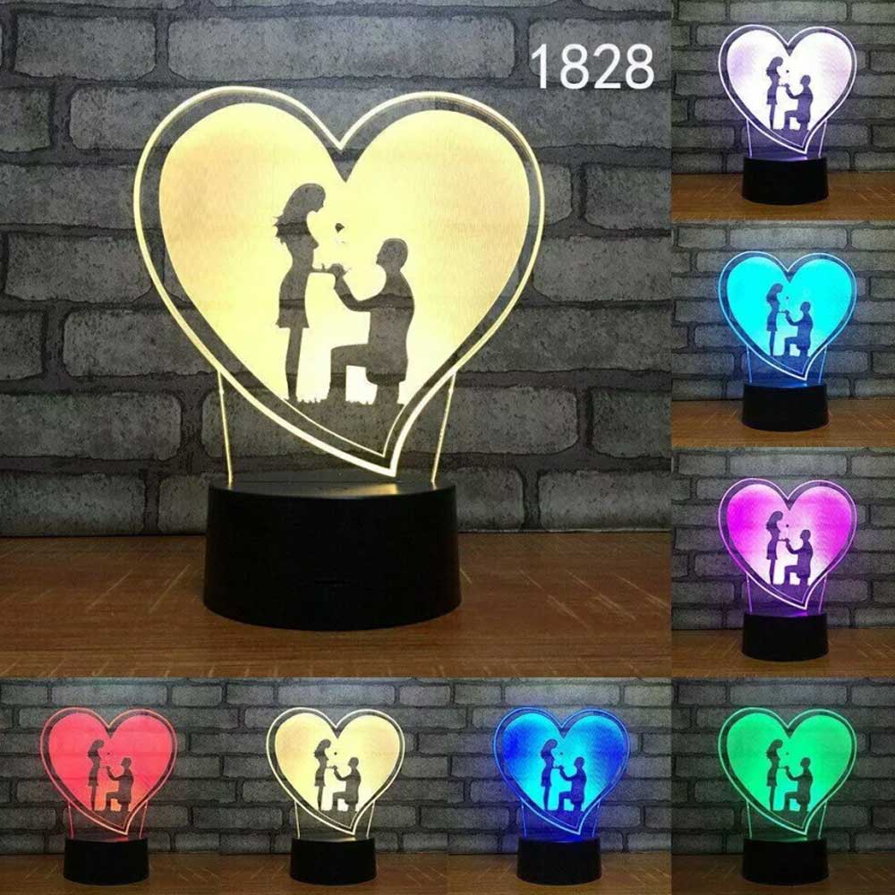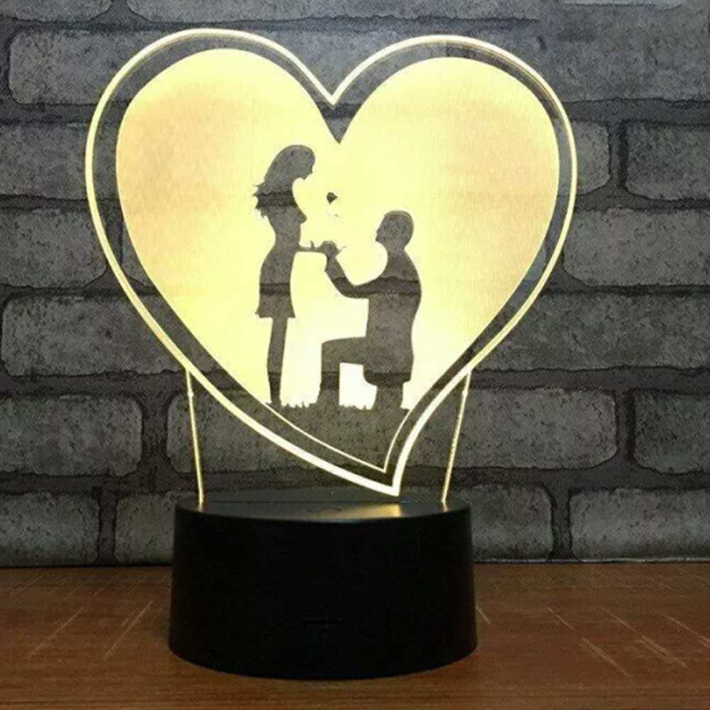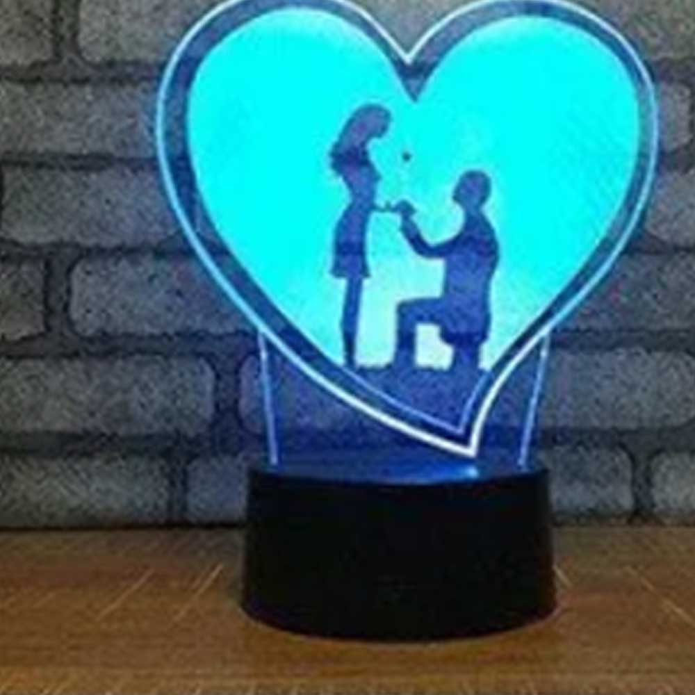 3D Acrylic LED Propose Wedding 7 Colour Novelty Gift Night Light TouchTable Lamp