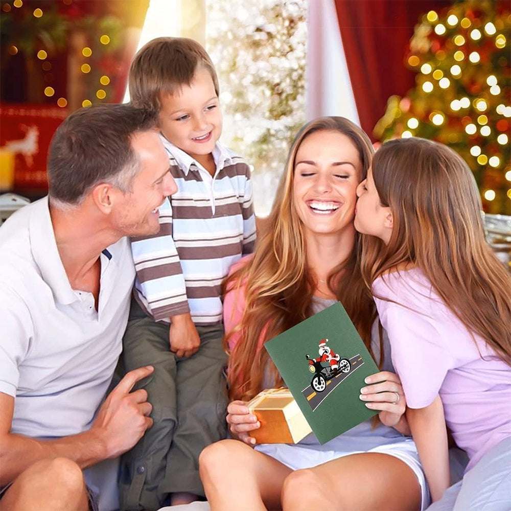 3D Pop-Up Christmas Card - Santa Claus on Motorbike Holiday Greeting Card