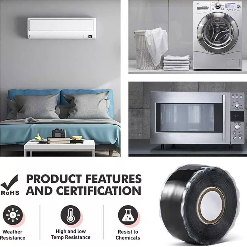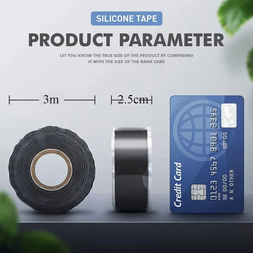 3Meter Self Fusing Silicone Tape Black Waterproof Non Adhesive Removable Seal