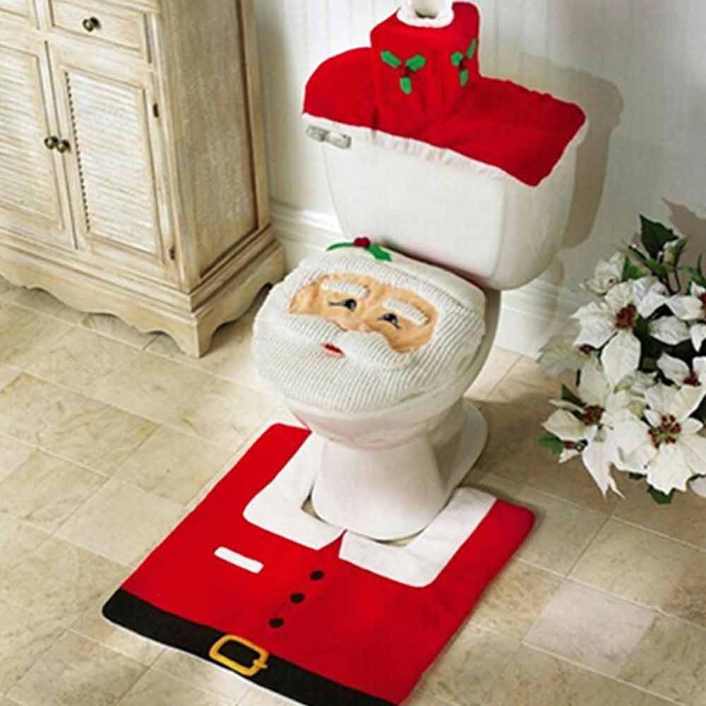 3PCS/set Christmas Decoration Santa Toilet Seat Cover Paper Rug Bathroom