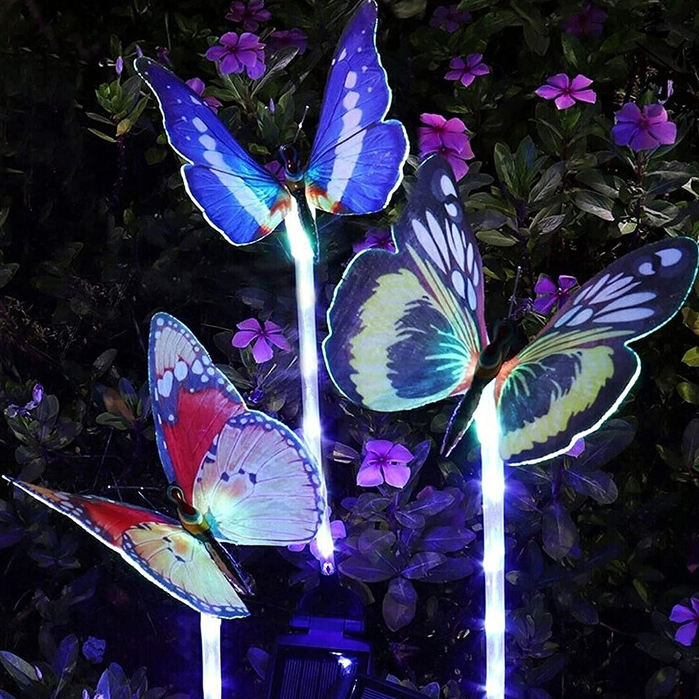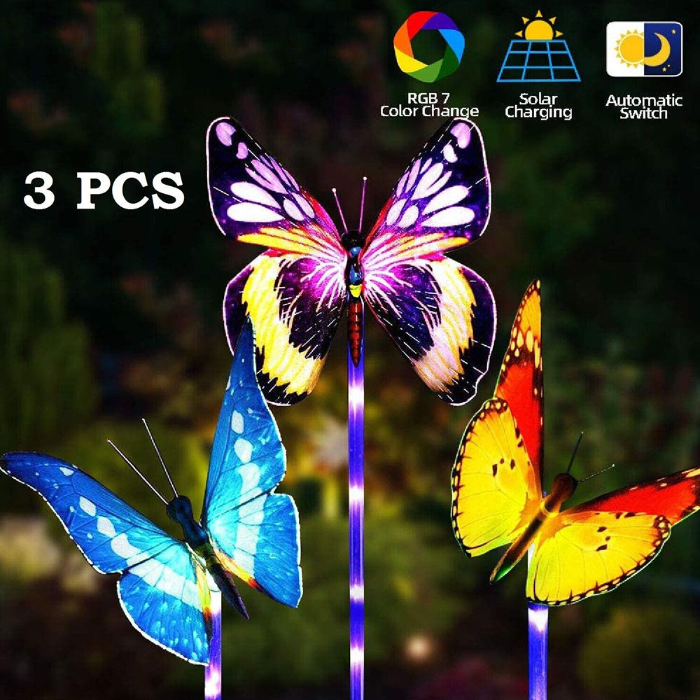 3PCS Solar Powered LED Light Butterfly Outdoor Garden Lawn Stake Lamp Waterproof