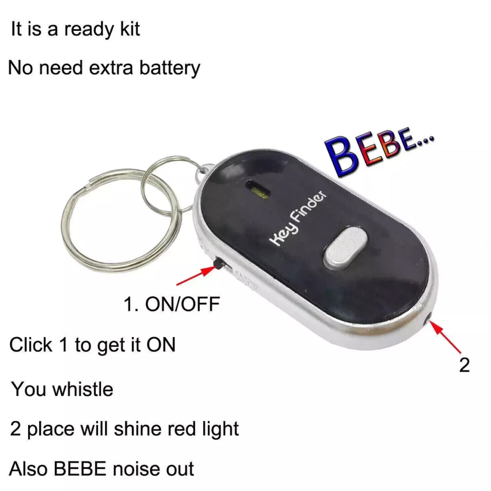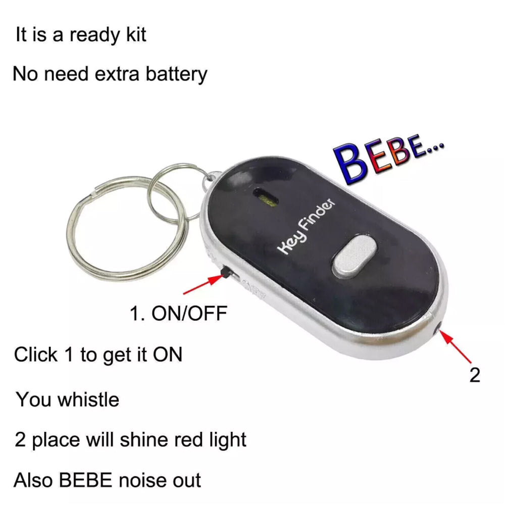 LED Whistle Key Finder Flashing Beeping Sound Control Alarm Anti-Lost Key Locator Finder Tracker with Key Ring