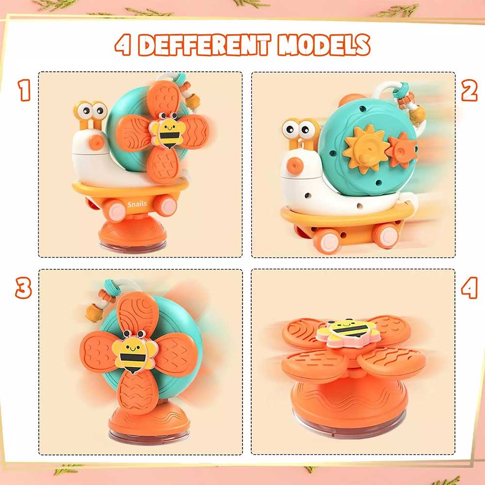 4 in 1 Baby Fidget Spinner Snail Windmill Set Suction Cup Infant Fun Bath Toy