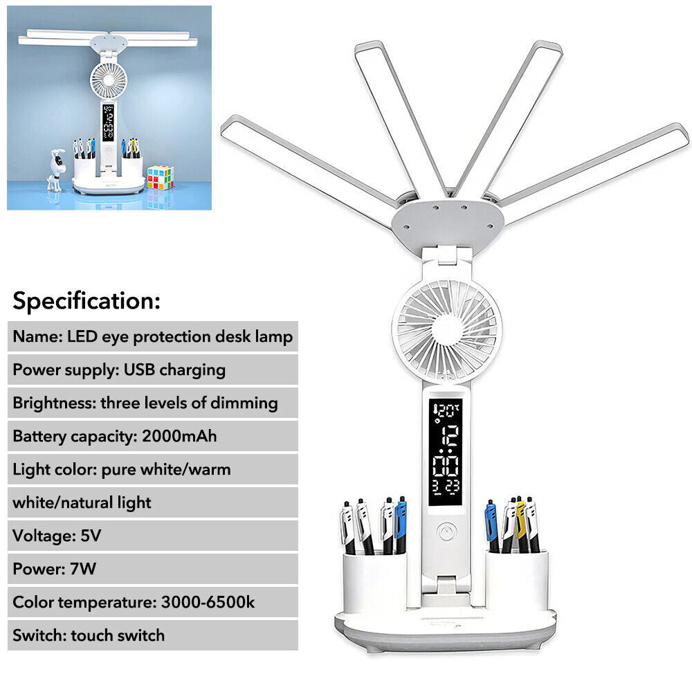 4 IN 1 LED Desk Lamp with Fan Dimmable Reading Lamp Reading Table Night Light