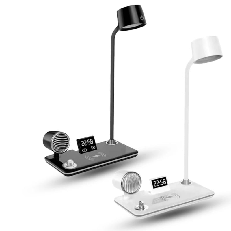 4-in-1 LED Desk Lamp with Wireless Charger, Alarm Clock & Bluetooth Speaker – Black & White Variants