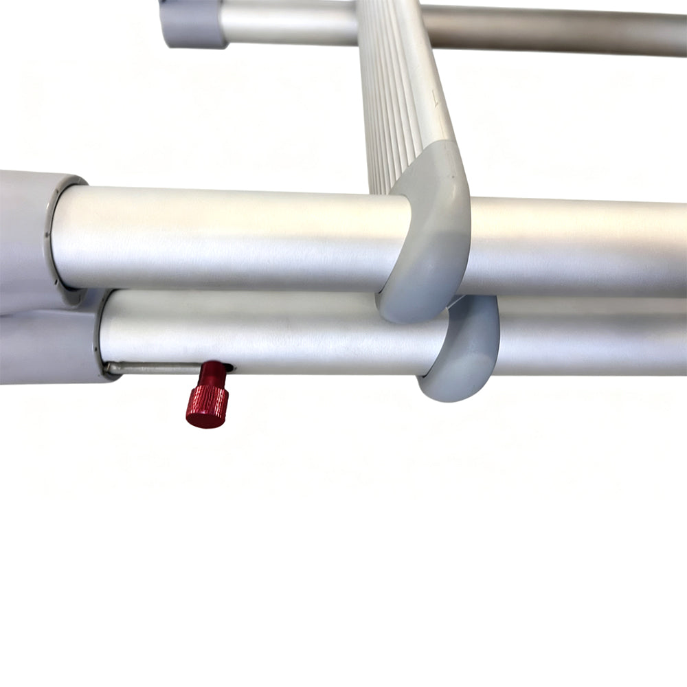 Crafted from lightweight aluminium, this ladder is sturdy yet easy to move, set up, and stow away. It features non-slip footplates and a stable base for extra security, ensuring confident climbing every time. When not in use, simply fold and secure it with the included mounting brackets and travelling clamps.