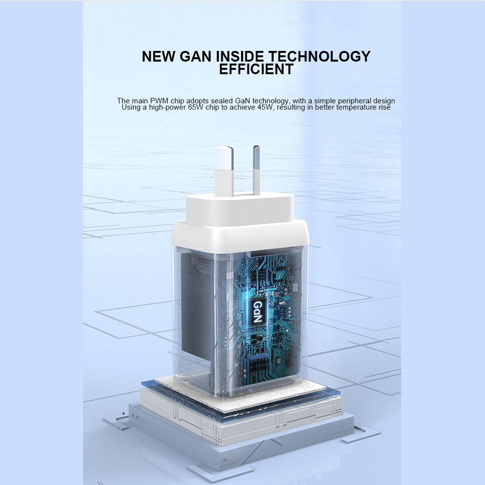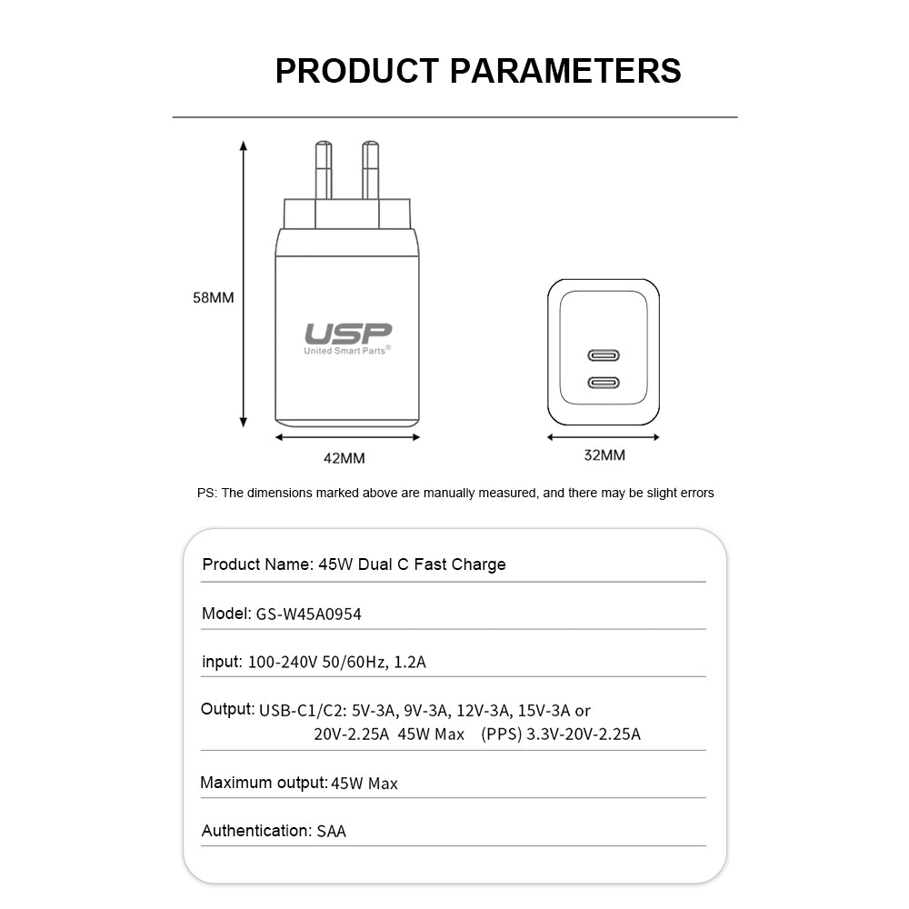 45W GaN Super Fast 2 USB-C Power Adapter Wall Charger For iPhone iPad Samsung