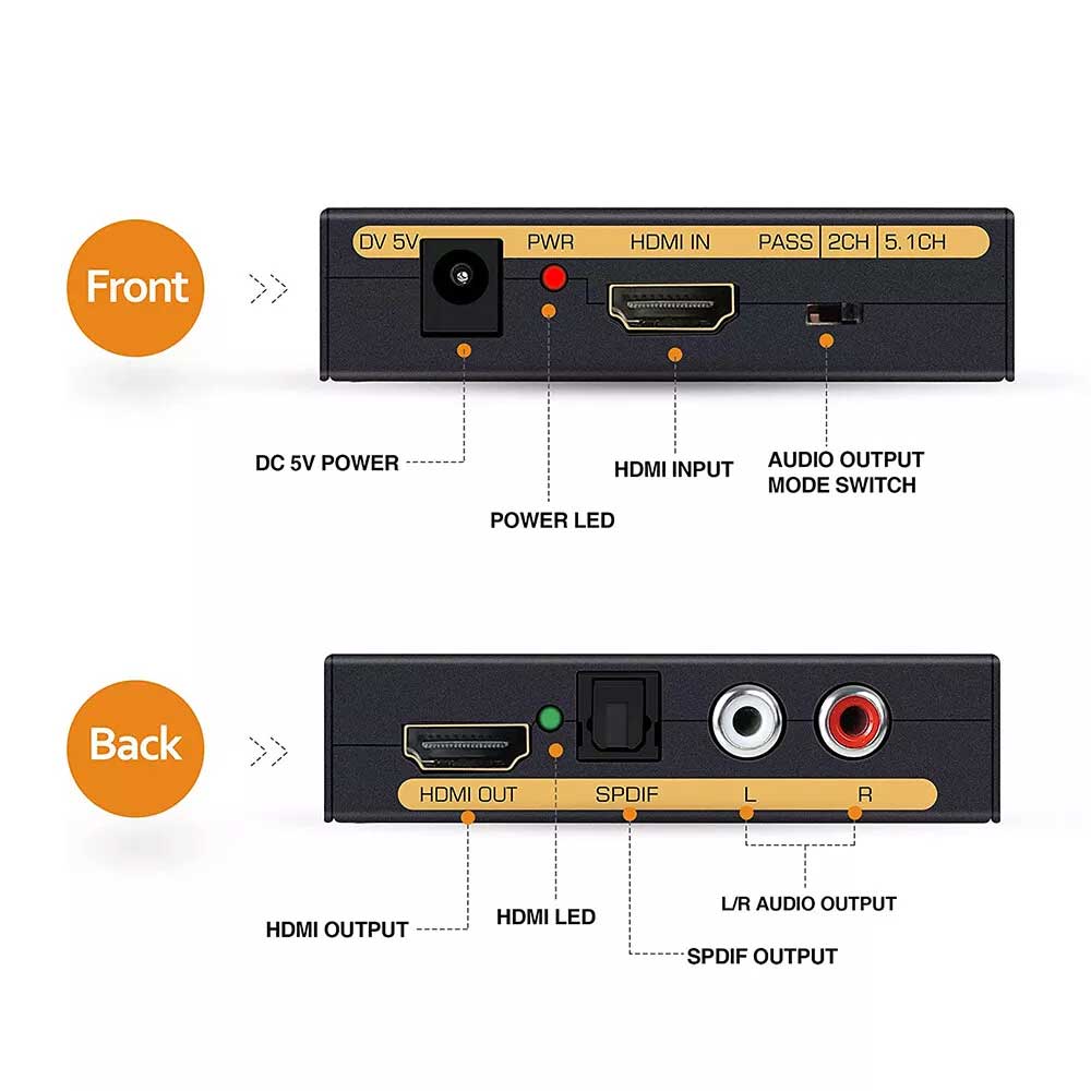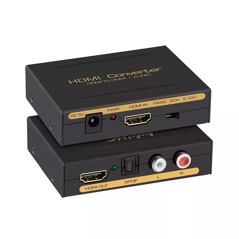 HDMI Audio Splitter Extractor: [Upgraded 4K@60HZ version] avedio Link HDMI to HDMI Audio Extractor Converter can extract audio from digital HDMI signals to amplifiers, Soundbar, speakers, etc. via optical SPDIF or RCA L/R stereo audio output. It allows separate output to an audio receiver without powering up the HDTV/monitor.
