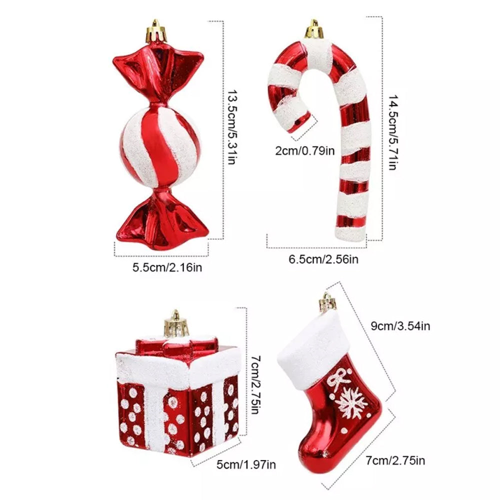 4Pcs Christmas Large Red & White Candy Hanging Pendant Ornaments Xmas Tree Decor