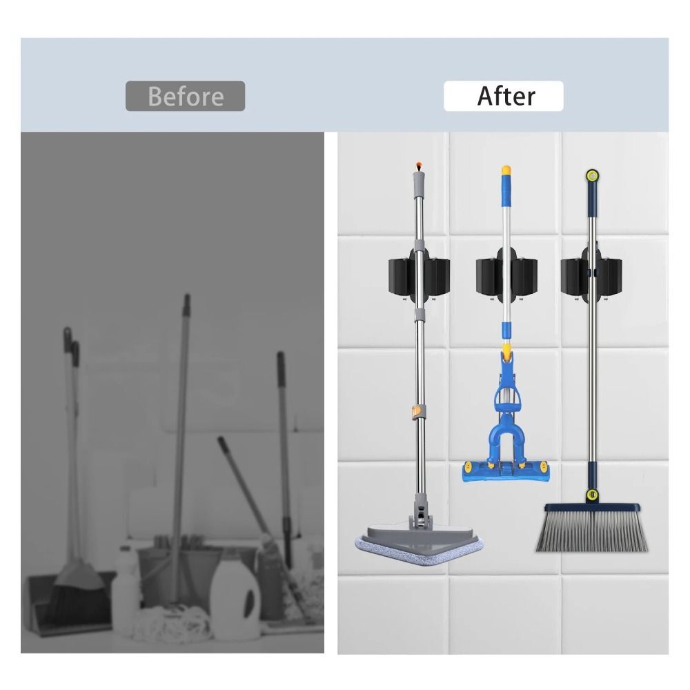 mounting brooms, mops, shovels and rake with ease, instead of leaning the brooms to the wall and into the corners.