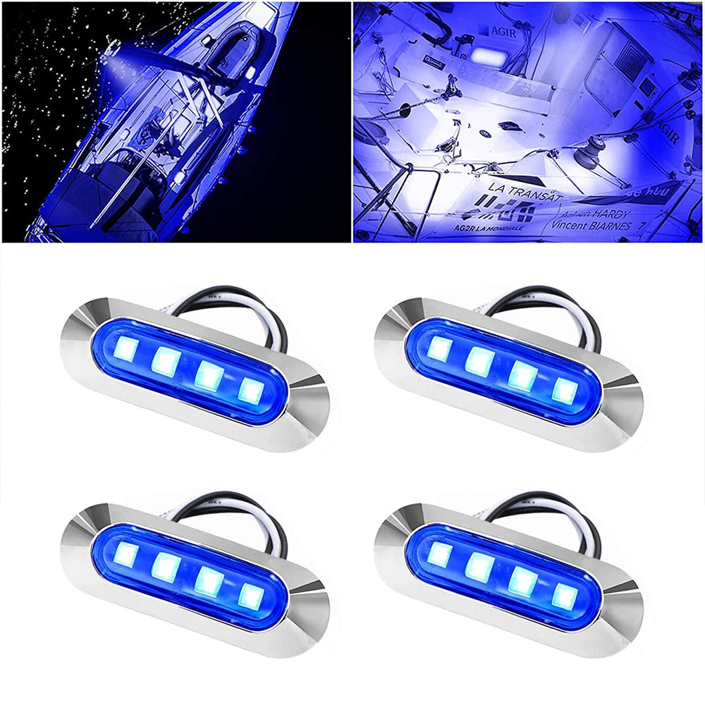 4x Marine Boat LED Courtesy Lights Cabin Deck Walkway Stair Light Blue 12V -24V