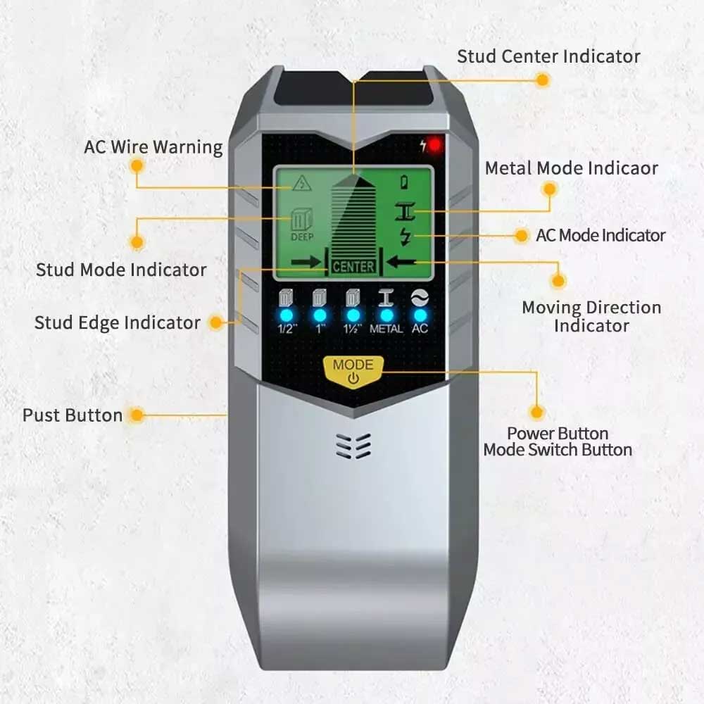 2. This product can quickly and easily locate wooden metal studs, joists, metal pipe reinforcement and live AC wires behind walls, floors and ceilings.