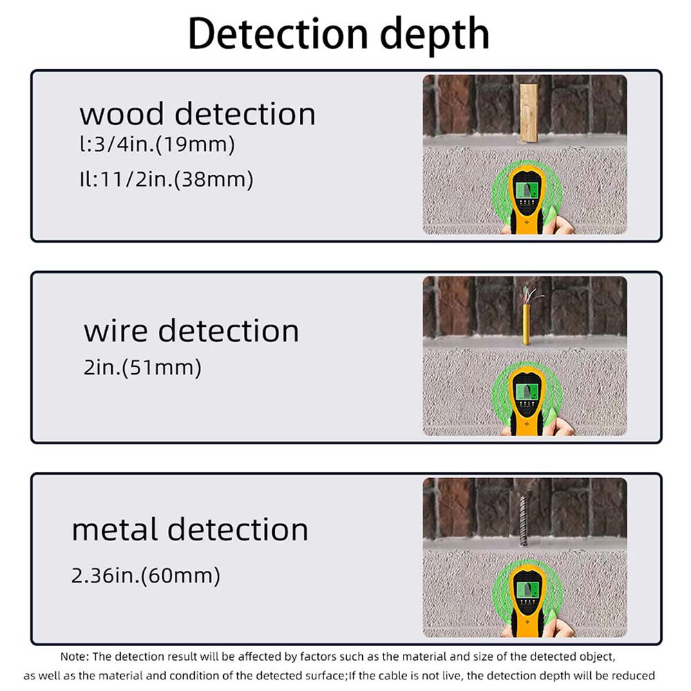 2. Upgraded LCD Display and Audible Warning - This wall detector features a large LCD display and audible warning to help detect the exact location of objects. When material is found, the LCD display will indicate the direction and the intensity of the beep will tell you if you are closer to the target. Quick detection saves you time considerably.