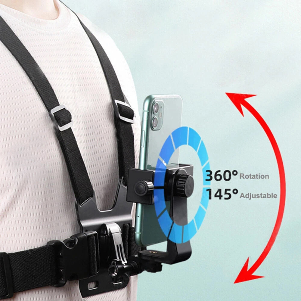 Use your smartphone as an action camera! This chest mount keeps your cell phone or action camera securely in place for smooth filming of everyday adventures.