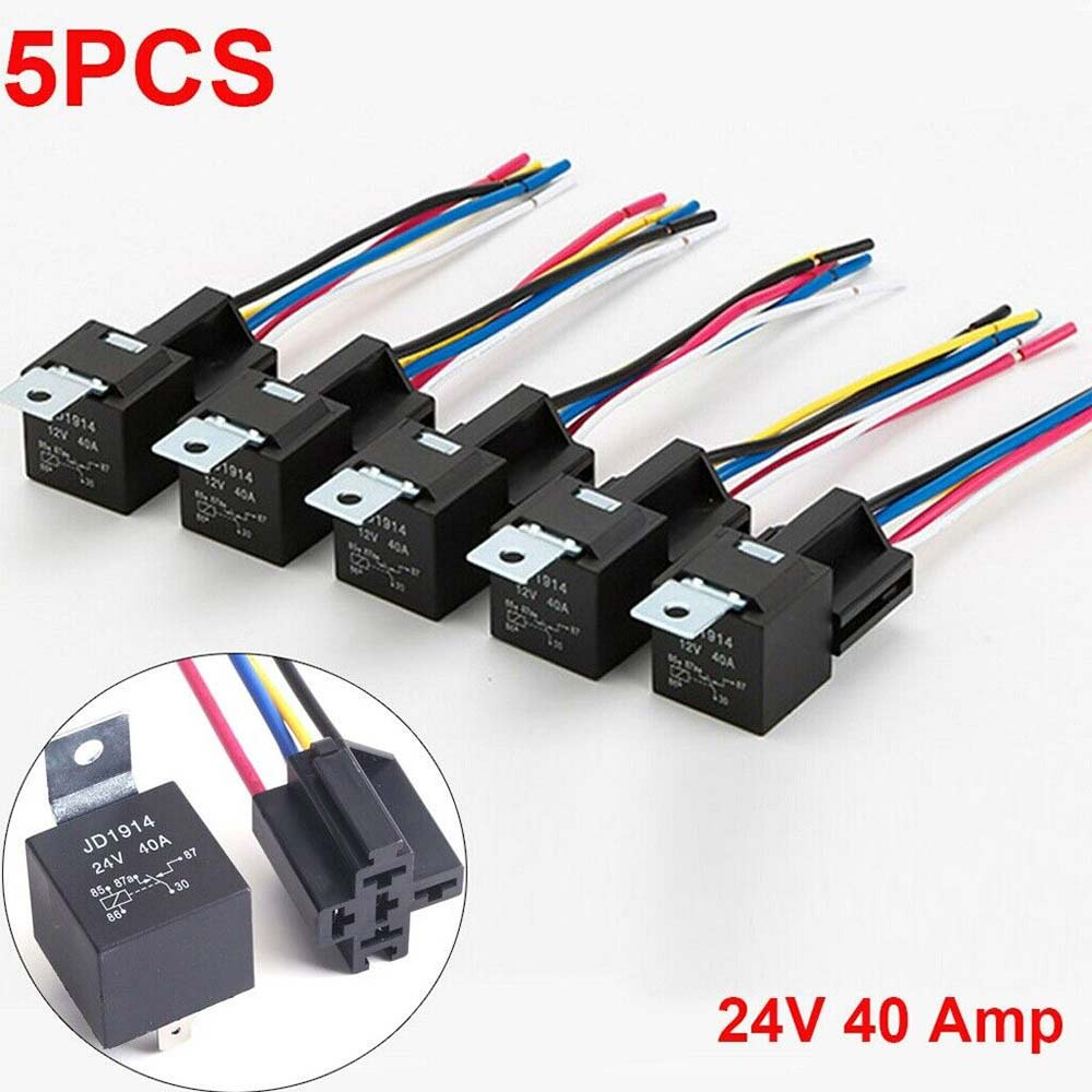 5PCS/Set 24V 40 Amp Car SPDT Automotive Relay DC 4 Pin 5 Wires W/ Harness Socket
