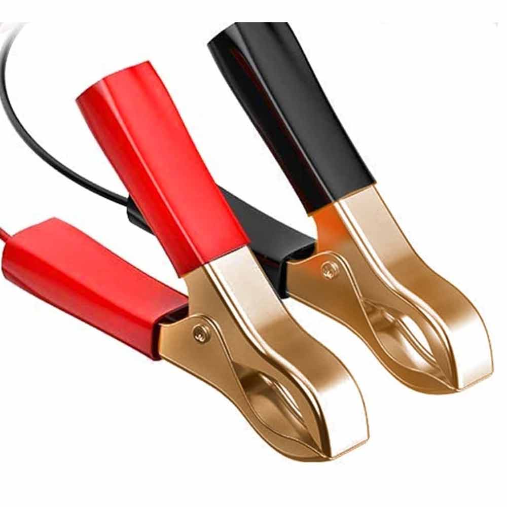 Clamp the black clip to the negative terminal of the vehicle's battery