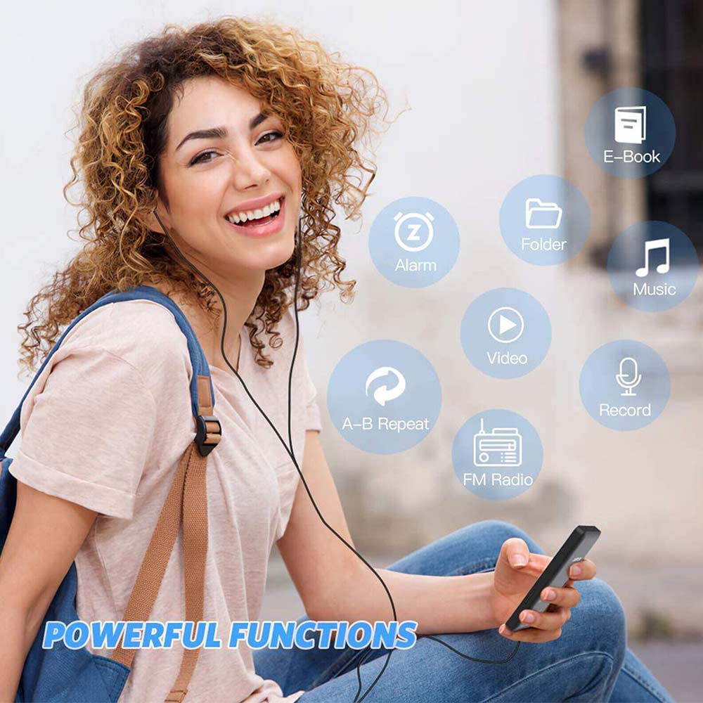 Portable MP4 Player supports recording, e-reading, video playback, radio search, song playback, playing games, browsing pictures, etc. BT 3.0 means faster transmission, stable performance, you can play music through a Bluetooth speaker or headset.