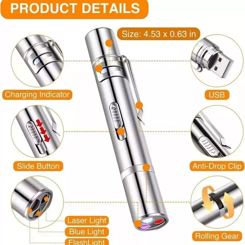 7-in-1 Multi Functional UV Laser Pointer Pen - USB Rechargeable with Mini Torch