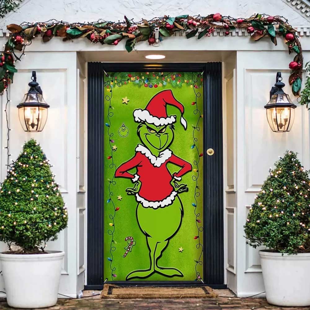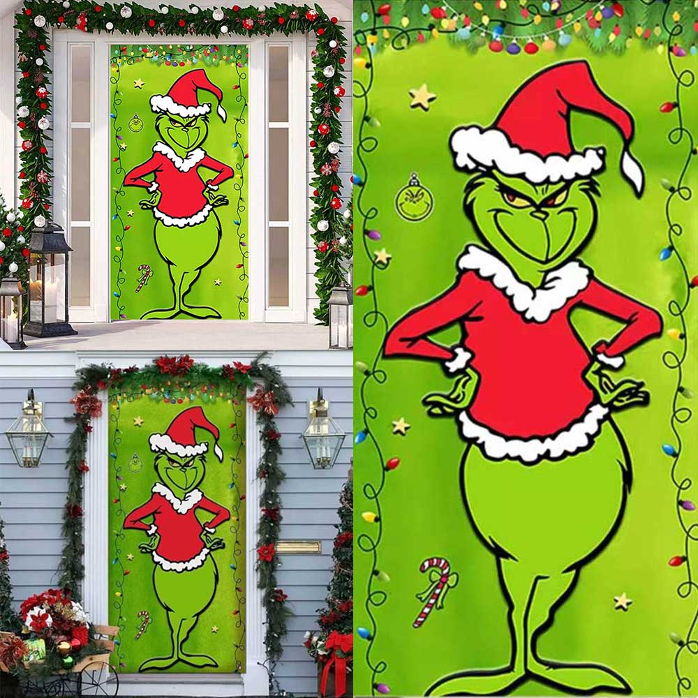 90*200cm Grinch Christmas Door Cover Decoration Grinch Green Merry Christmas Porch Sign