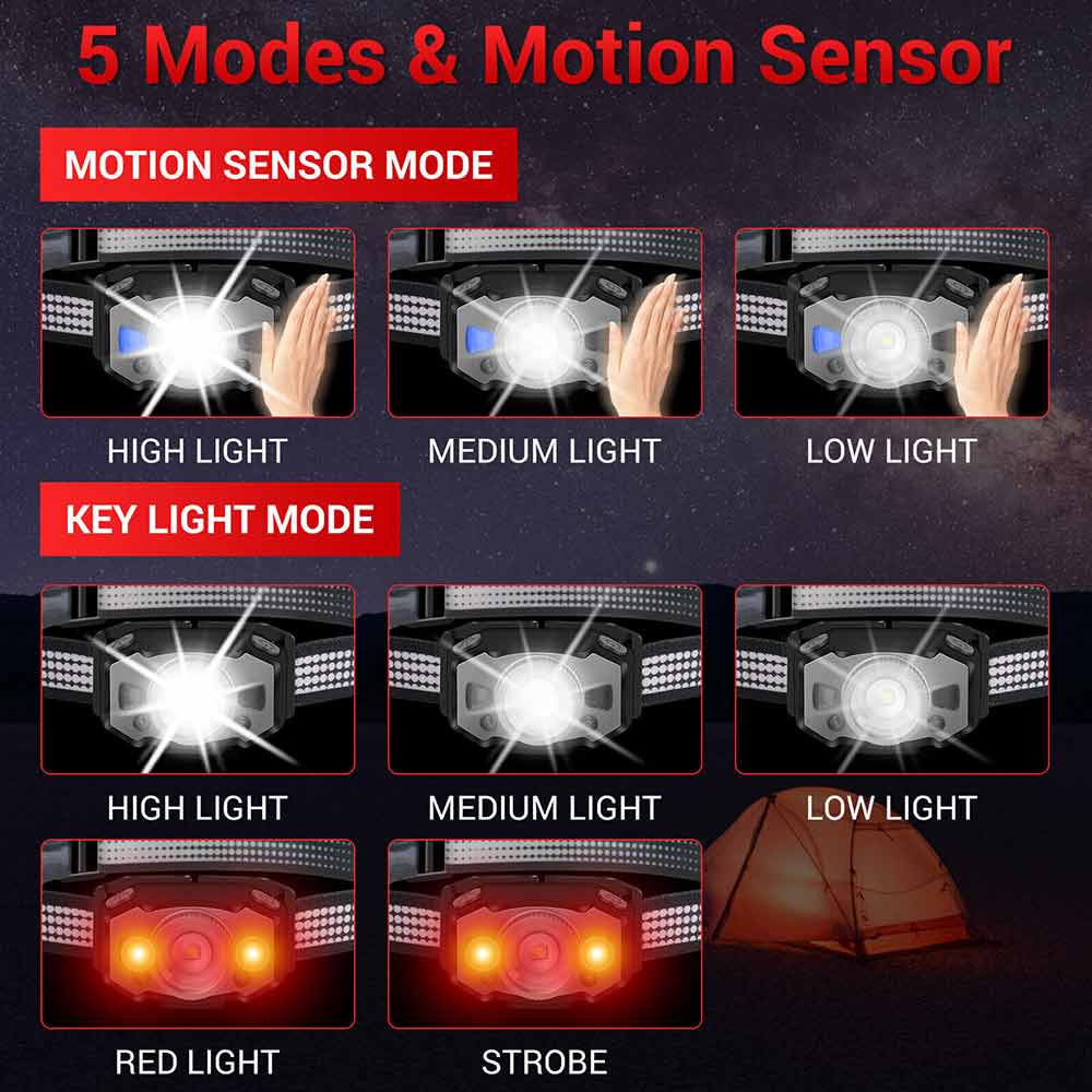 2. Smart Wave Sensor: Just waving your hand in front of the headlamp to control it on or off !