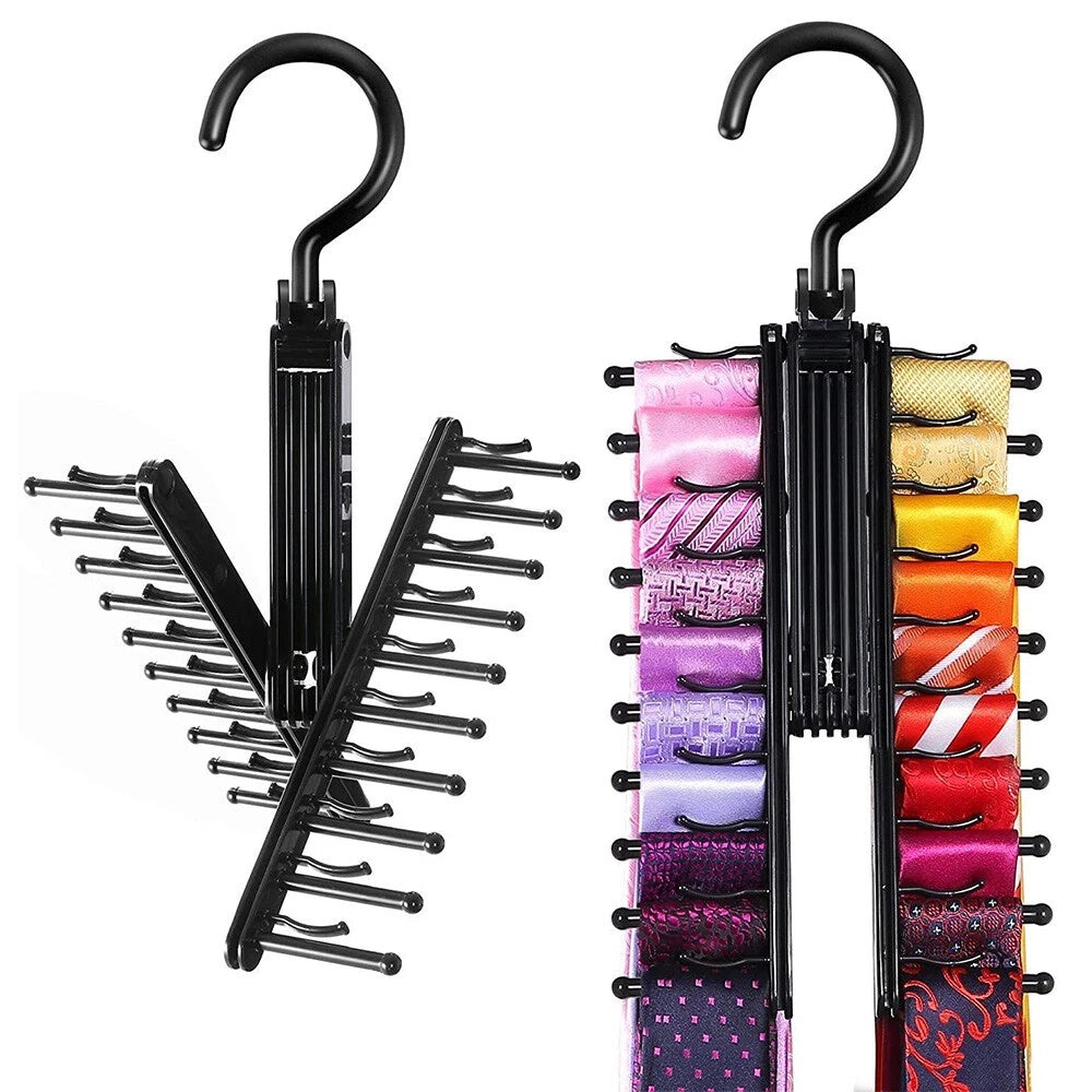 Adjustable 360 Rotating Scarf 20 Tie Rack Belt Home Hanger Holder Compact NEW
