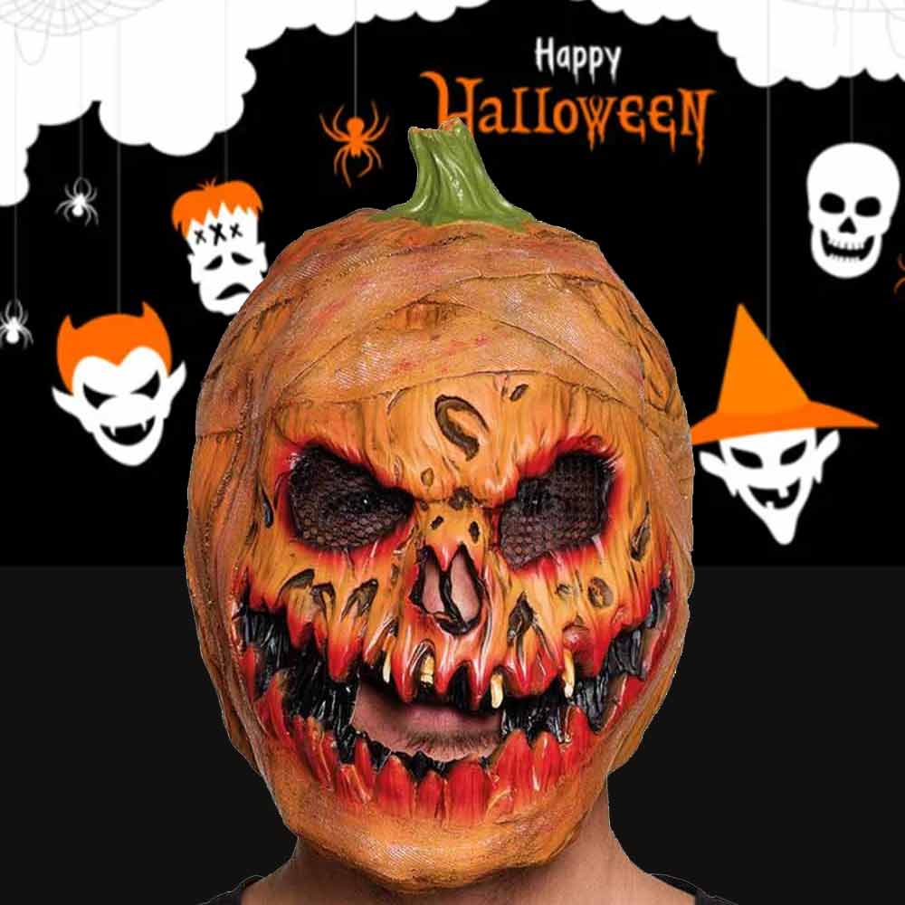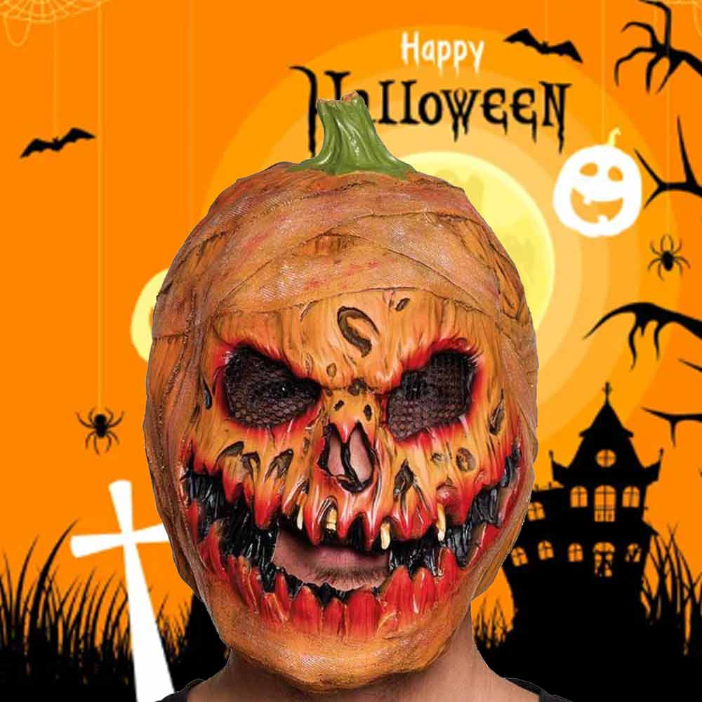 Adult Latex Pumpkin Head Mask Scary Halloween Horror Fancy Dress