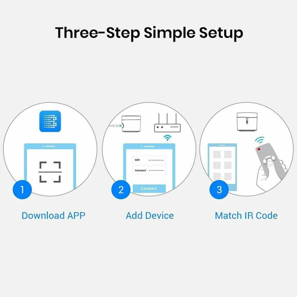 - Works with Alexa and Google Assistant to add hands-free voice control of your IR appliances by just saying "Alexa, turn on the TV" or “Hey Google, turn on the air conditioner".