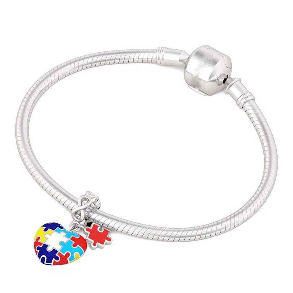 Show your support for autism awareness with this beautiful heart puzzle charm. Crafted from high-quality S925 sterling silver, this dangle charm is the perfect addition to any European bracelet. The intricate puzzle design symbolizes the complexity of autism and the love and support needed for those affected by it.