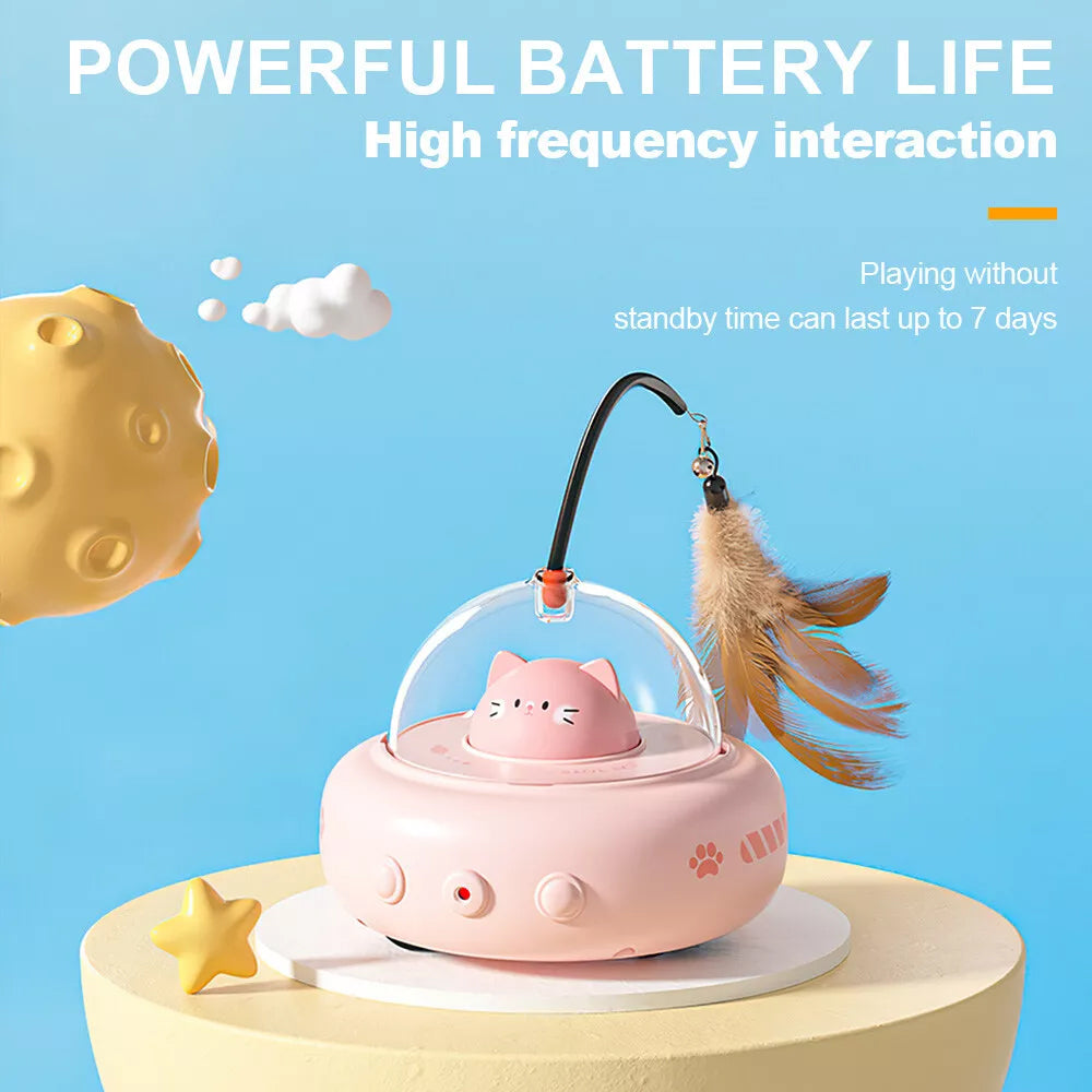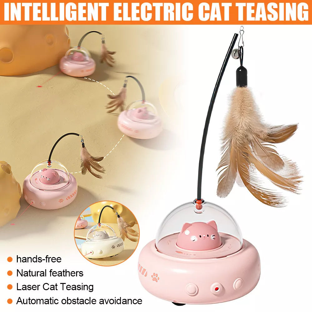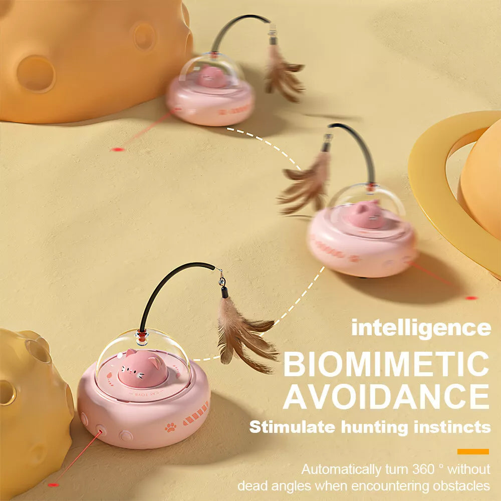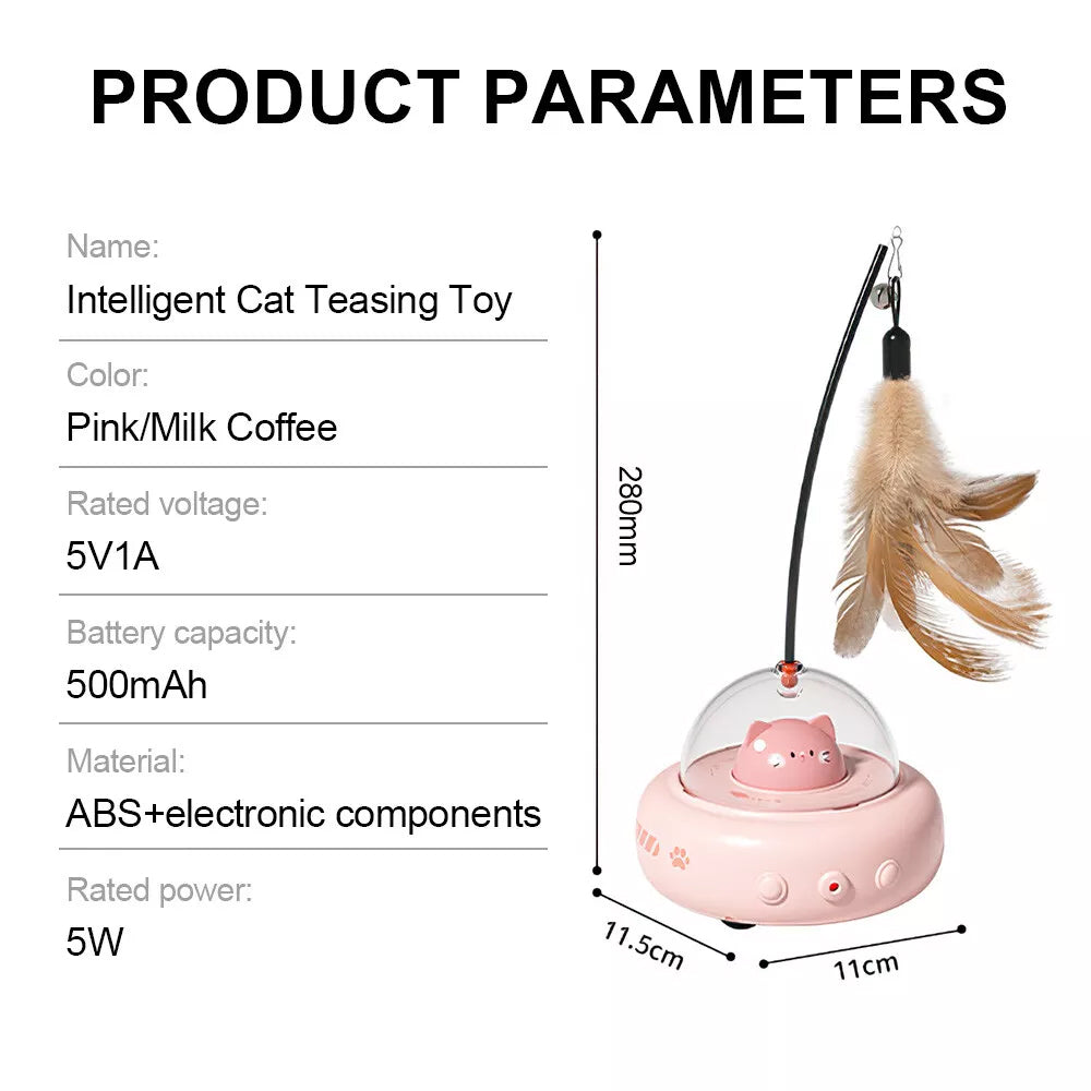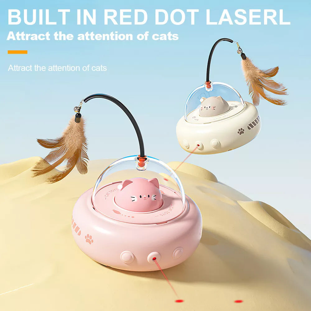3. Novelty and Exciting: With a beautiful shape and 360-degree red light beam, our electric interactive cat toy provides a novel and exciting play experience for felines. Soft and cozy feathers are also randomly placed to add to the fun
